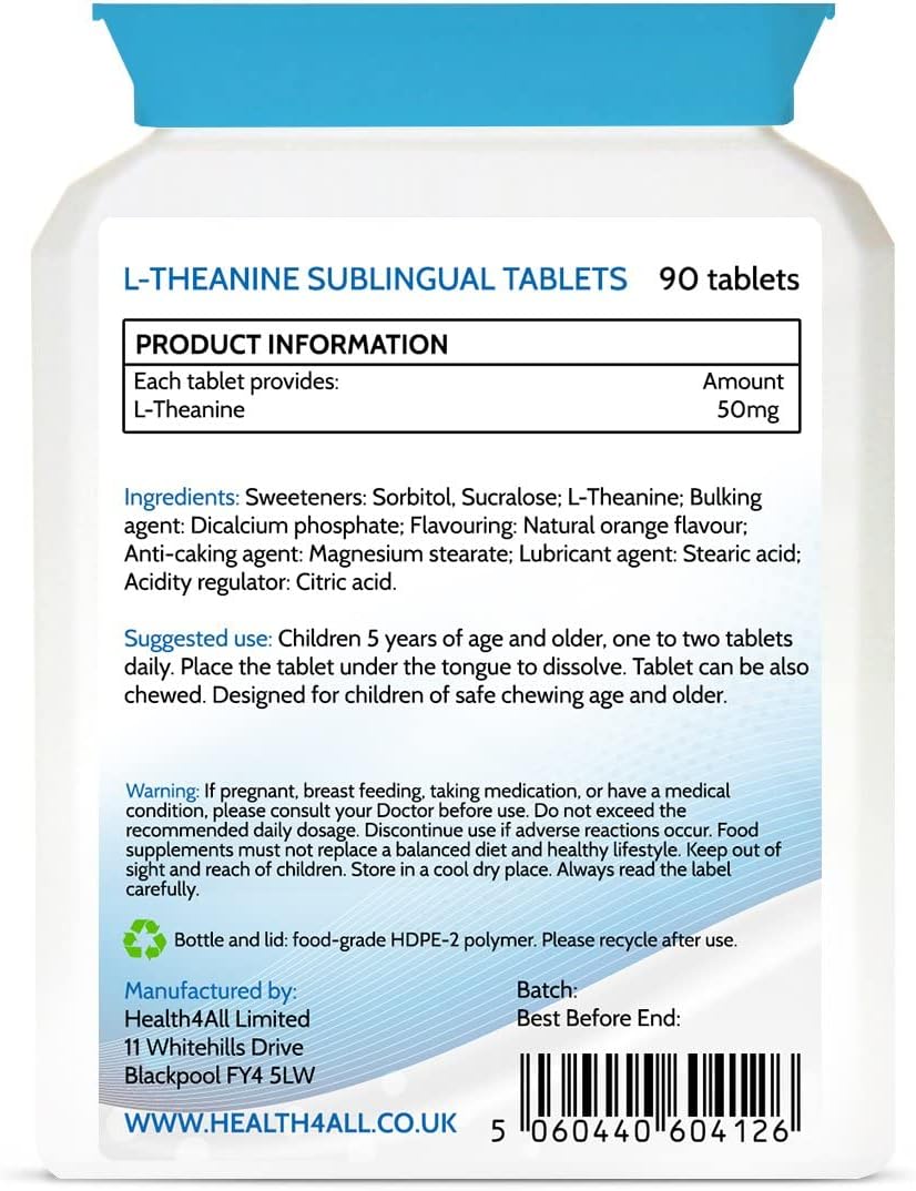 Health4All Kids L-Theanine 50mg 90 Tablets. Natural Orange Flavor Chewable L-Theanine. Vegan
