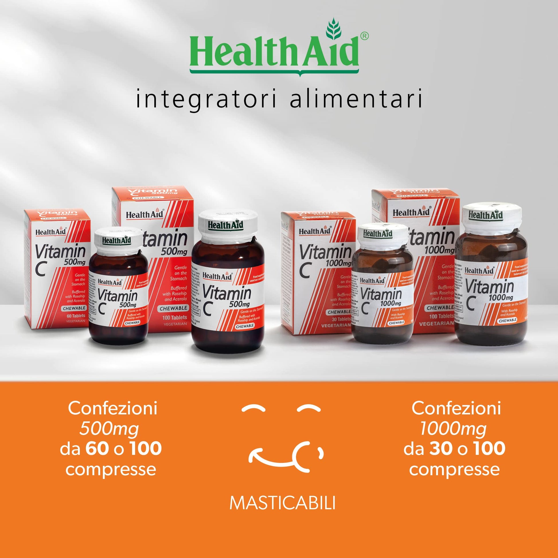 HealthAid Vitamin C 1000mg - Chewable - 30Vegetarian Tablets