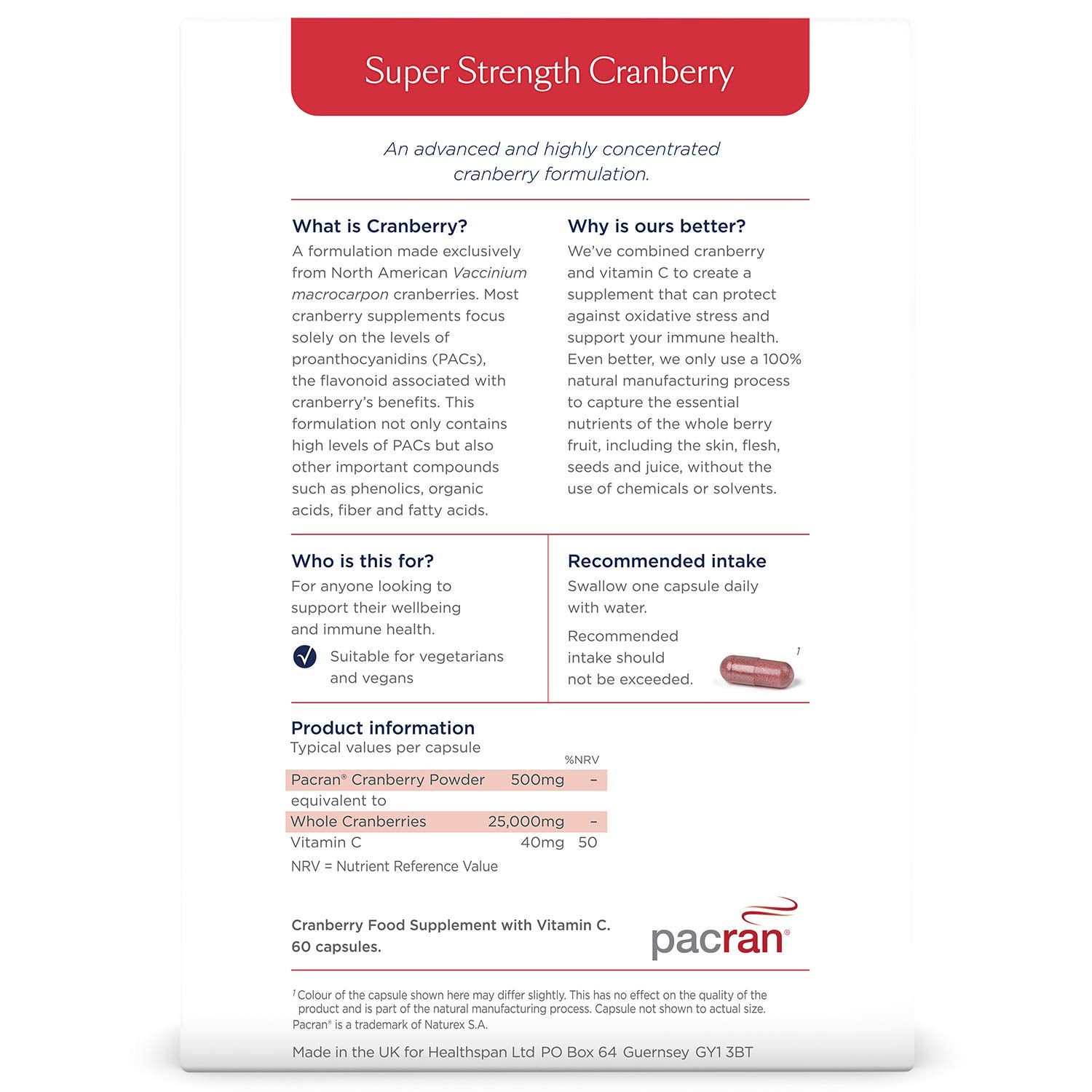 Healthspan Cranberry 25,000mg | 60 Capsules | Immune Health | 40mg Vitamin C | Equivalent to 25,000mg of Whole Fresh Cranberries | Vegan