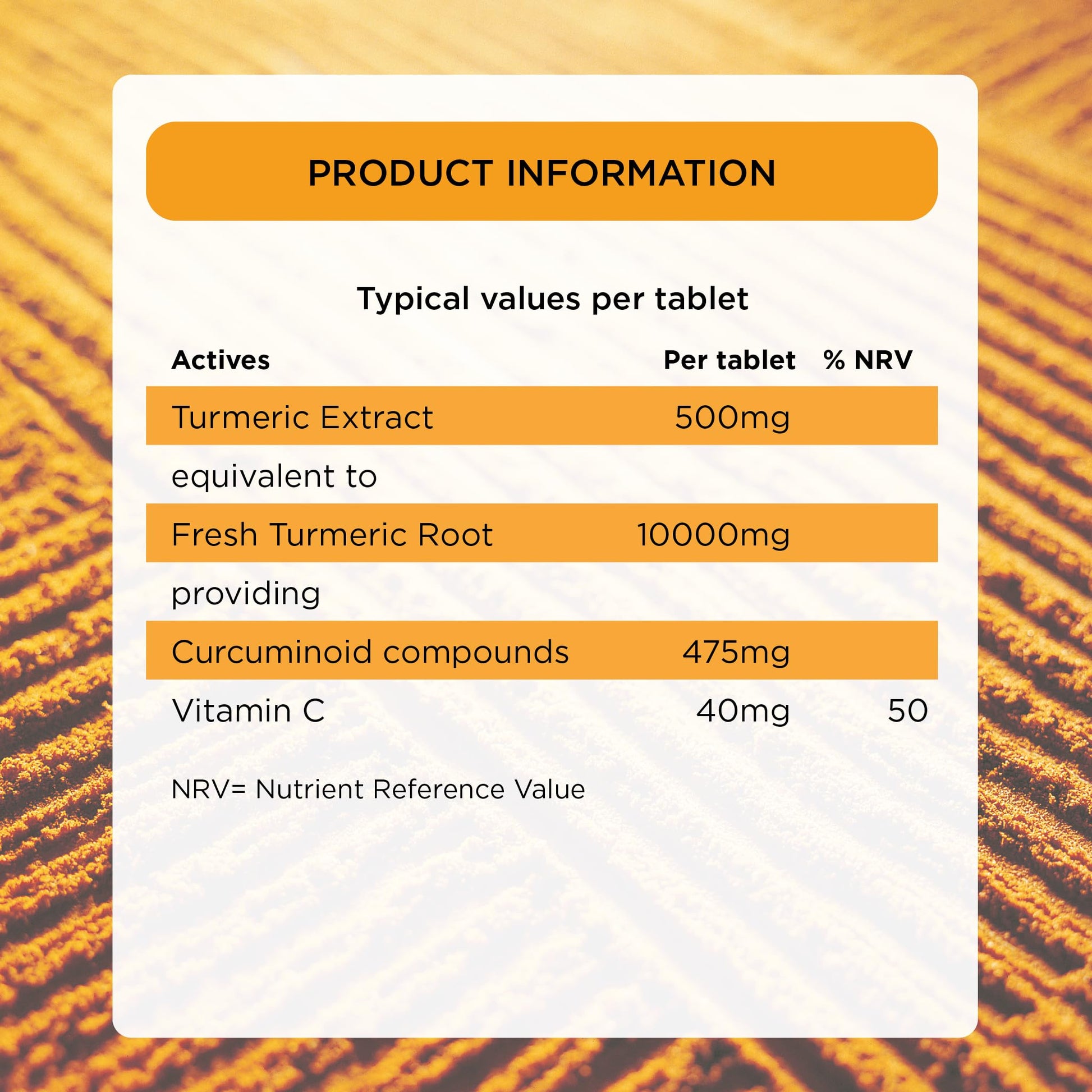 Why Choose Healthspan’s Turmeric 500mg?Experts recommend that you look for a supplement containing guaranteed amounts of curcuminoids, the beneficial compounds in turmeric root. Healthspan make their vegan tablets with a high-quality standardised extract that provides 95% curcuminoids. Each tablet contains 500mg natural turmeric extract, equivalent to a minimum of 10,000mg turmeric root.