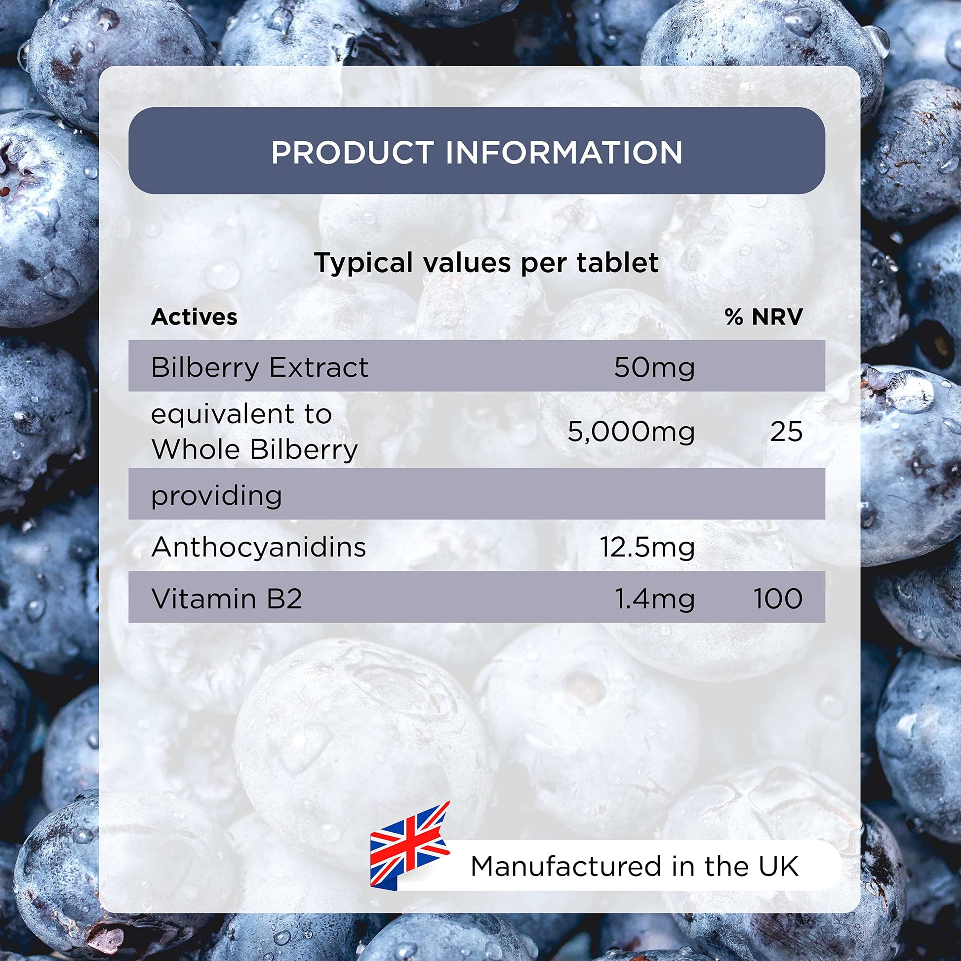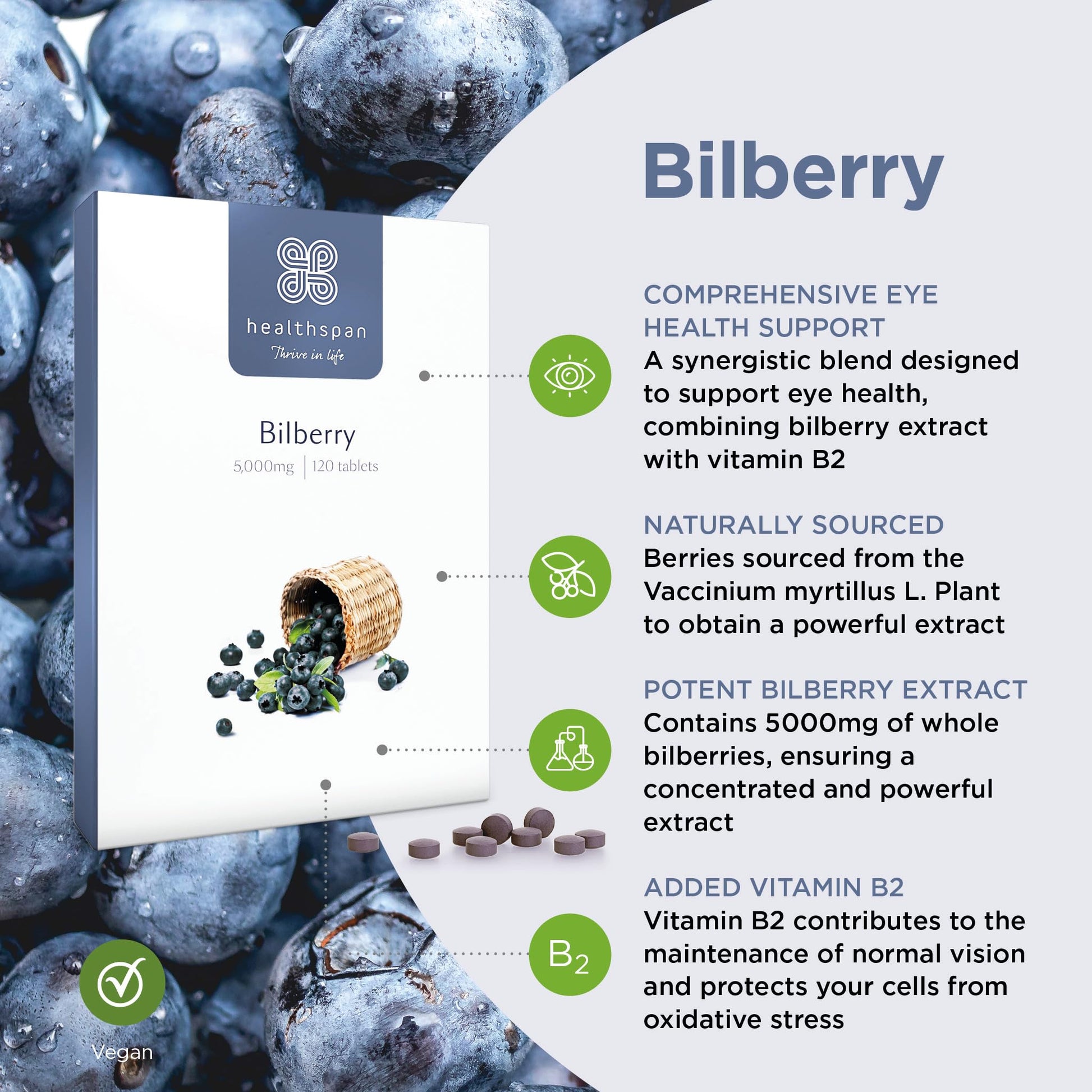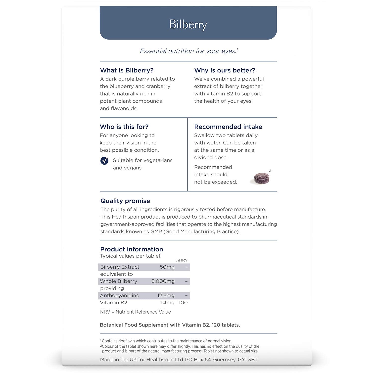 healthspan Healthspan Bilberry | 120 Tablets | Naturally Sourced | Vitamin B2 | Fresh Bilberries | Vegan