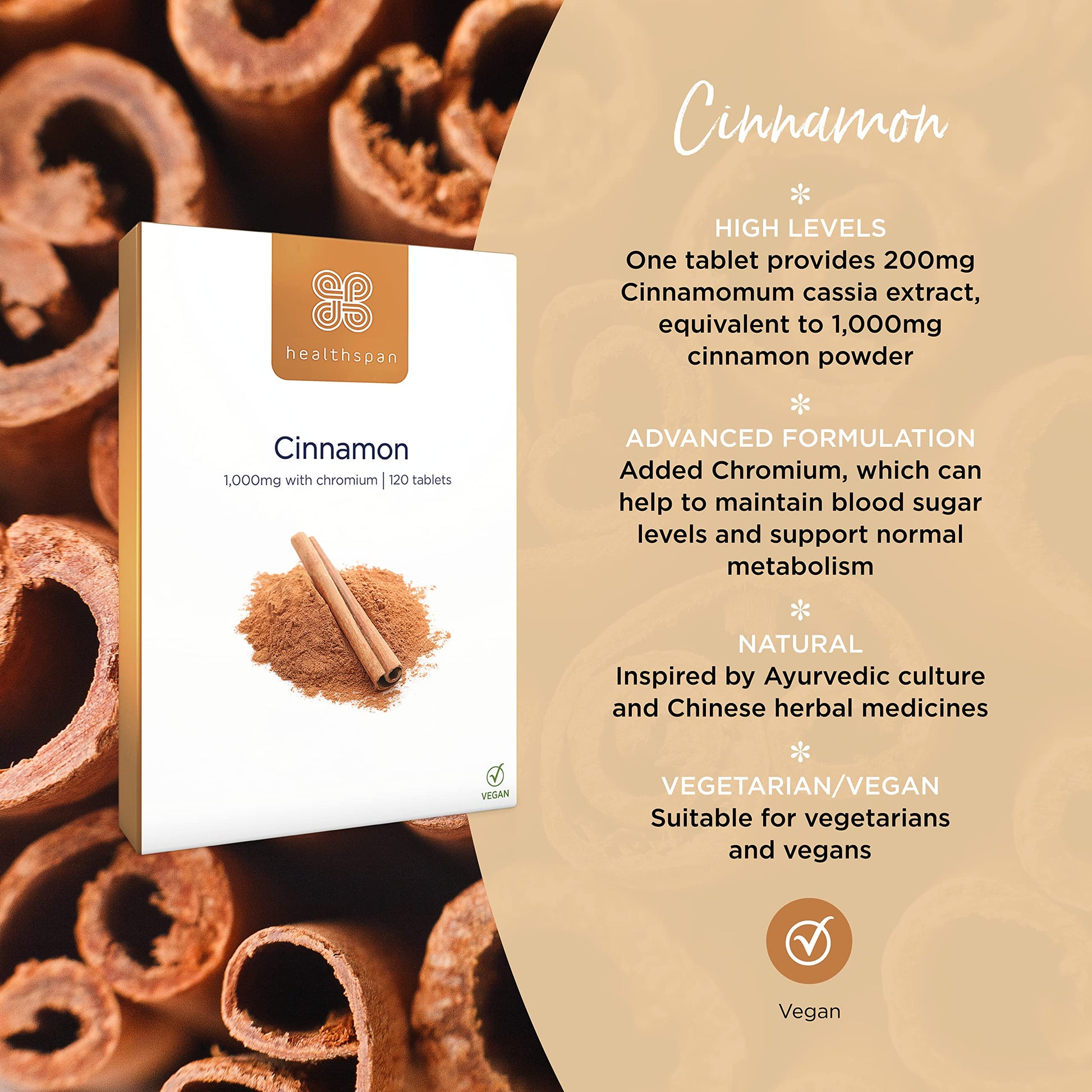 healthspan Healthspan Cinnamon 1,000mg (120 Tablets) | Supports Metabolism | Added Chromium to Maintain Blood Sugar Levels | Inspired by Ayurvedic Culture & Chinese Herbal Medicines | Vegan