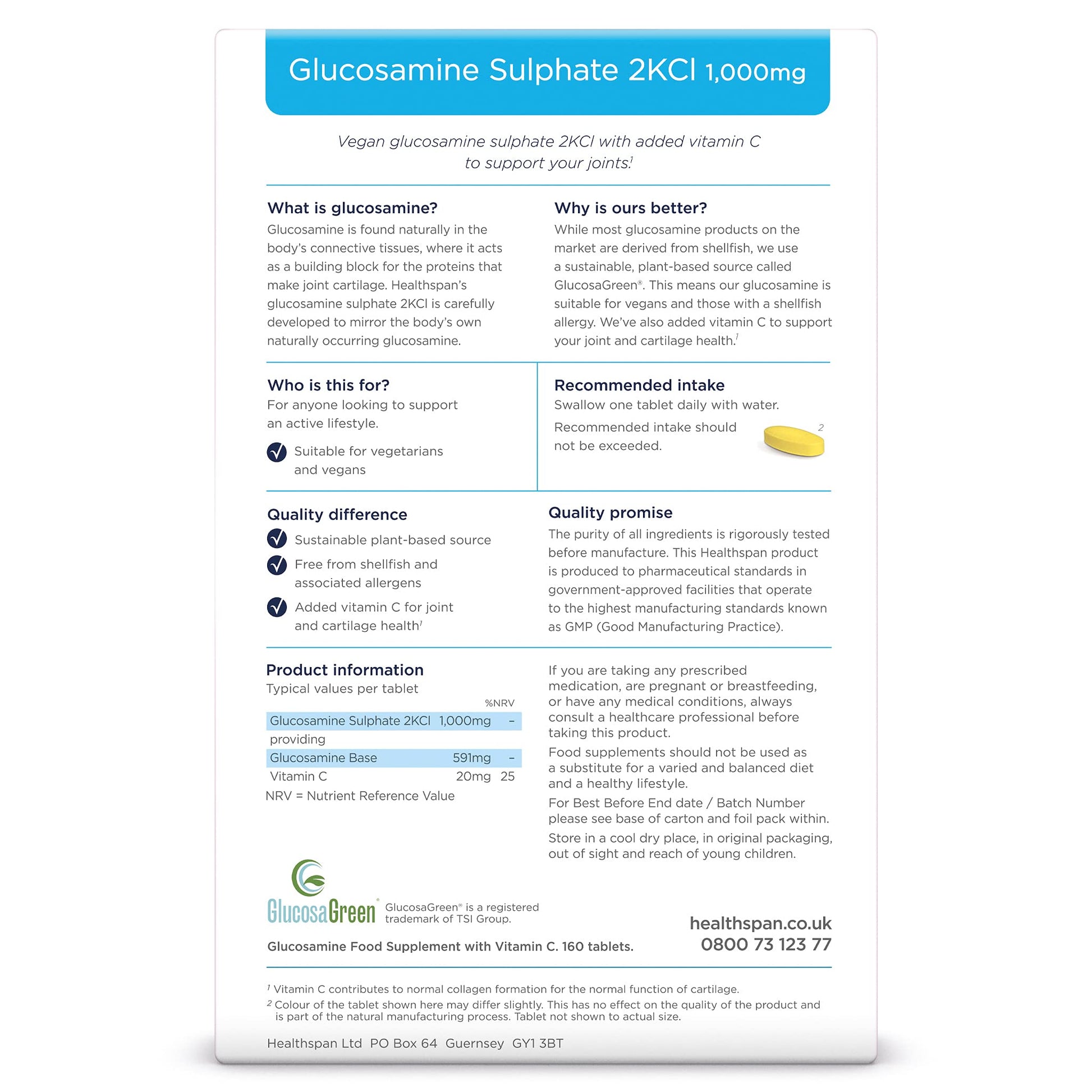 healthspan Healthspan Glucosamine Sulphate 2KCI 1,000mg (10 Months’ Supply) | Sustainably sourced Plant-Based glucosamine to Support Your Joints | 591mg Glucosamine Base with 20mg Vitamin C | Vegan