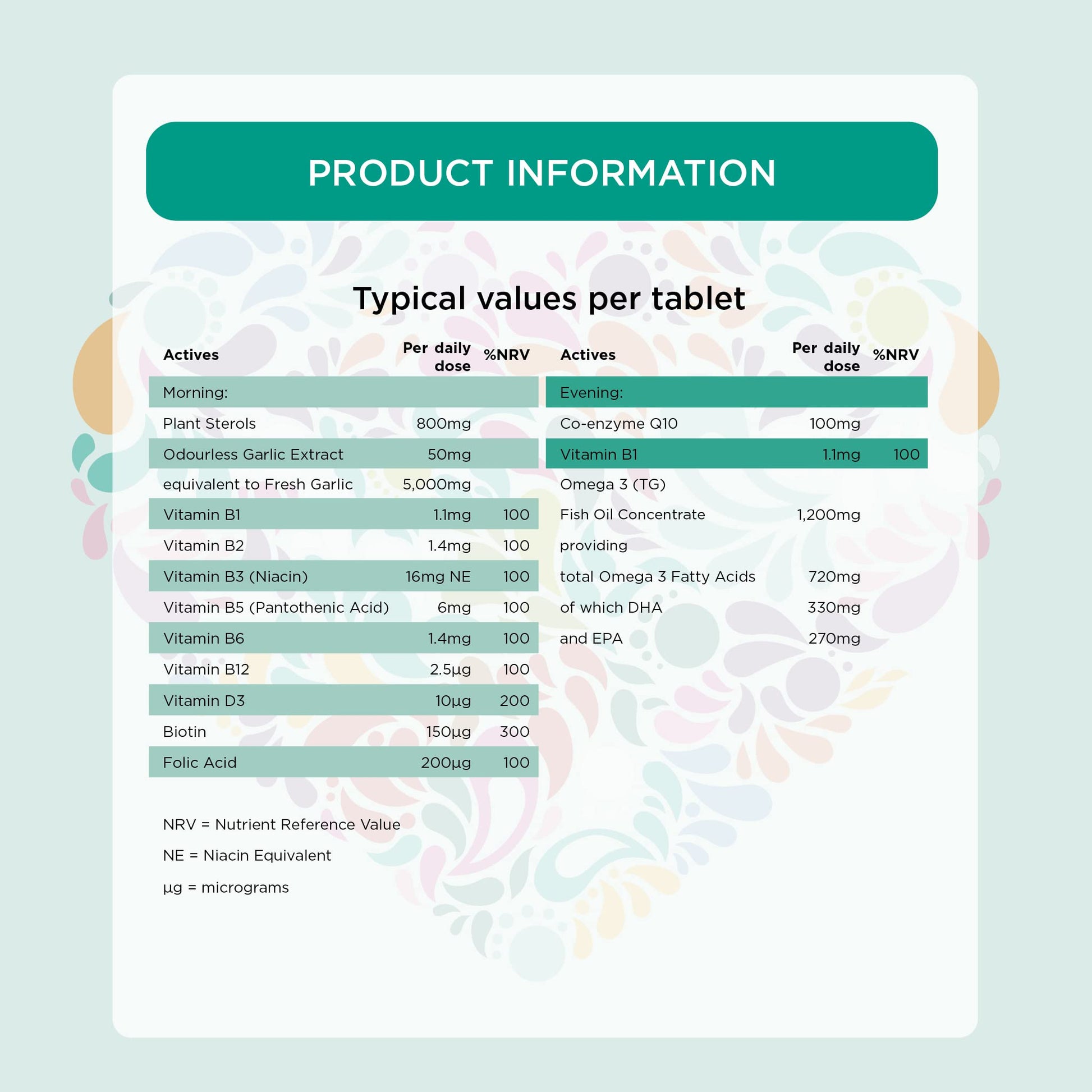 They have also included Co-enzyme Q10, a substance that is present in particularly high concentration in the energy-intensive cells of the heart, and an odour-free garlic extract that contains sulphur compounds, such as allicin, which have beneficial effects within the body.