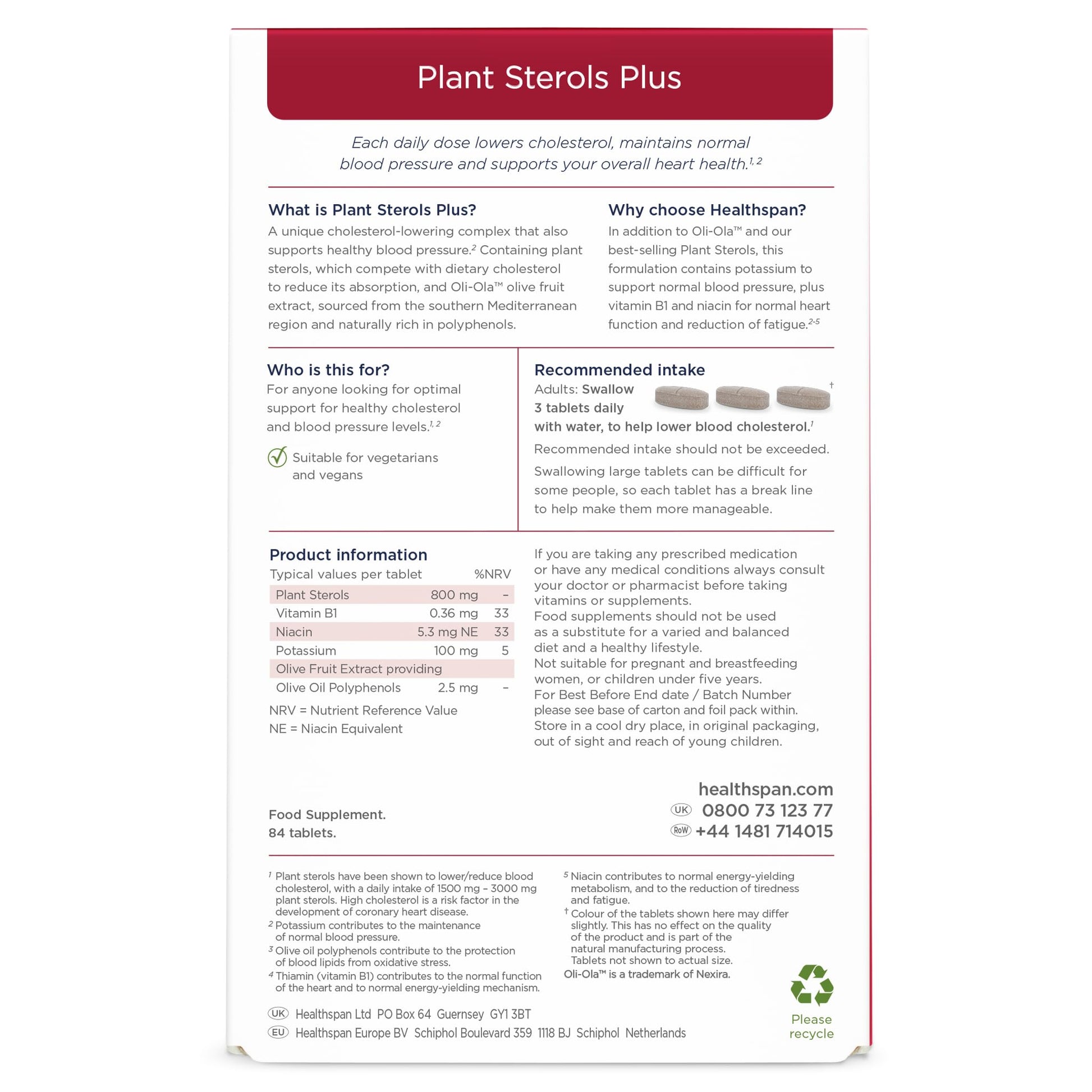 Healthspan Plant Sterols Plus (28 Day Supply) | 2400 mg Plant sterols with Oli-Ola Olive Extract | Added Potassium & Vitamins B1 & B3