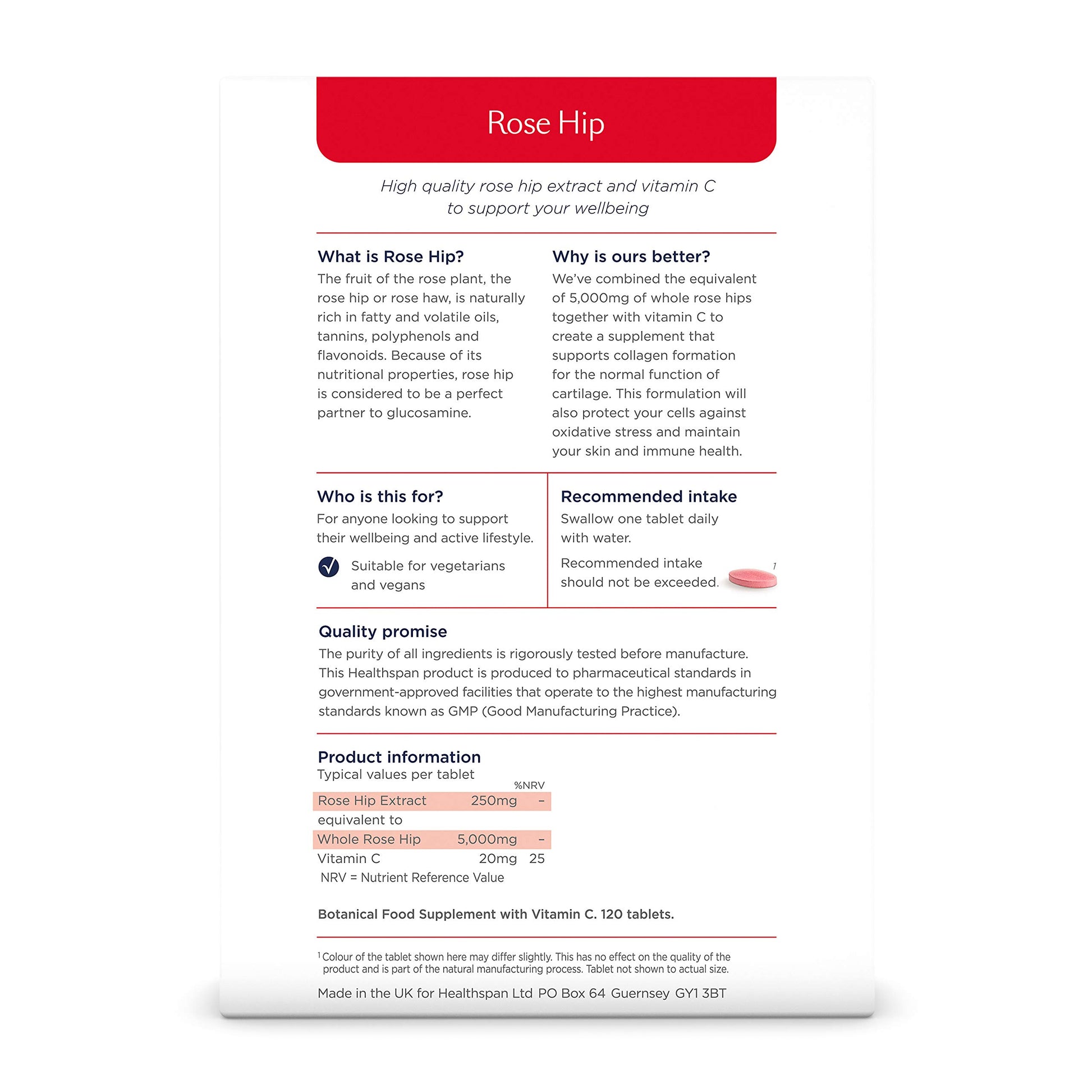 Healthspan Rose Hip 5,000mg (120 Tablets) | Supports Joints & Immune Health | Helps Maintain Healthy & Flexible Joints | Added Vitamin C | High In Flavonoids & Polyphenols | Vegan