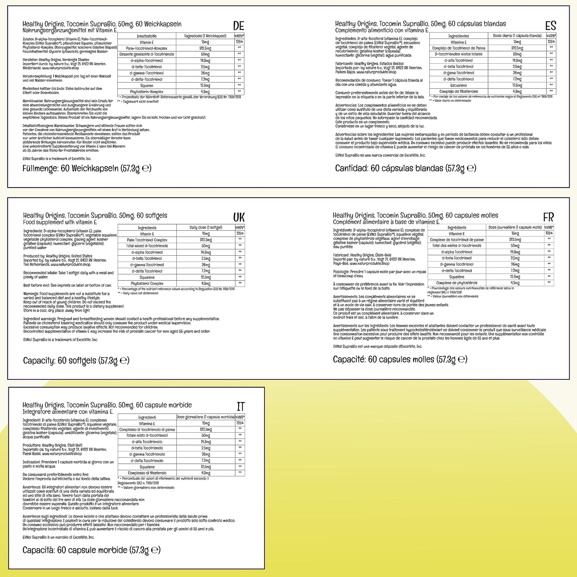 Healthy Origins, Natural Tocomin SupraBio, 50mg, 60 Softgels, Laboratory Tested, Vitamin E, Gluten Free, SOYA Free, Non-GMO