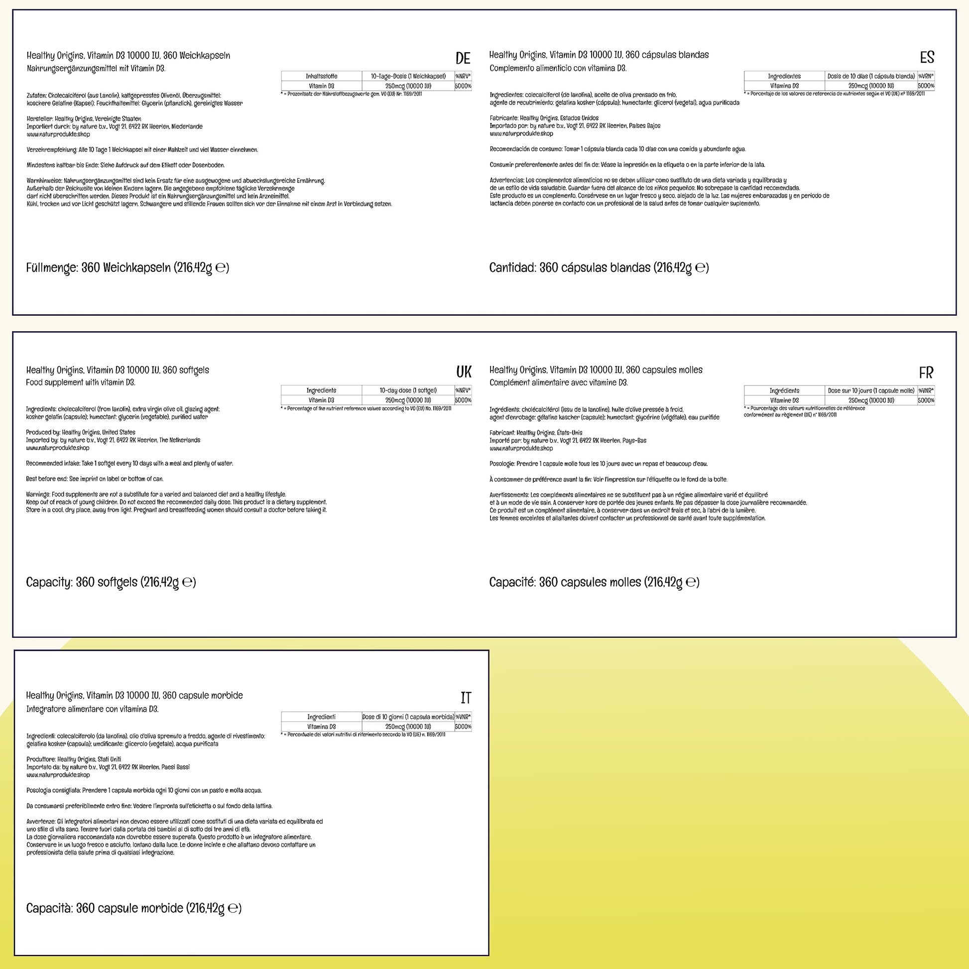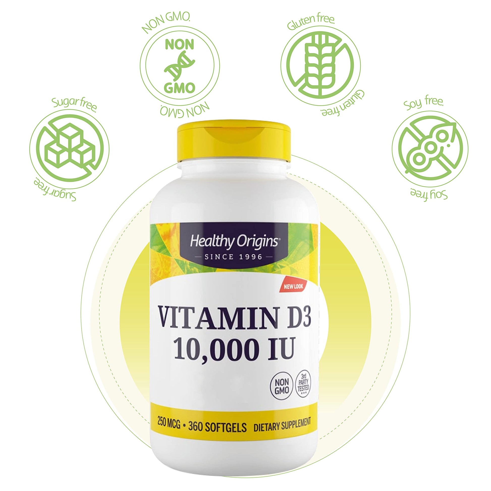 Healthy Origins, Vitamin D3, 10,000 IU, 360 Softgels, Lab Tested, Gluten Free, Soy Free, Non-GMO