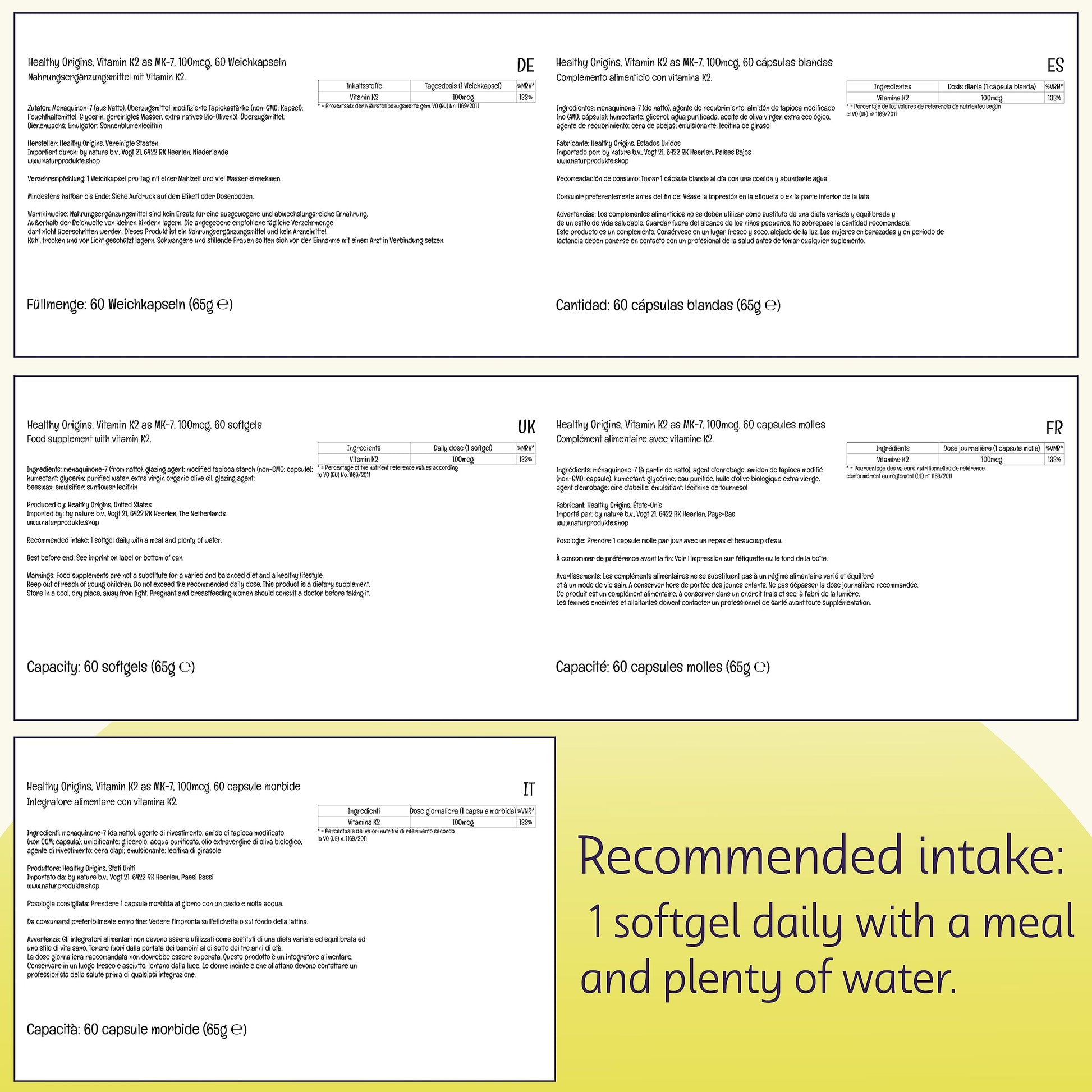 Healthy Origins, Vitamin K2 as MK-7, 100 mcg, 60 Vegetarian Softgels, Laboratory Tested, High Strength, Gluten Free, SOYA Free, Non-GMO