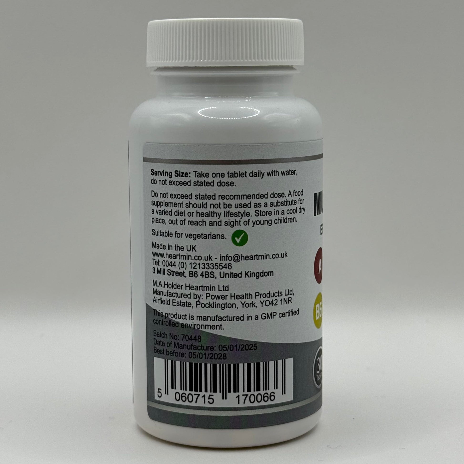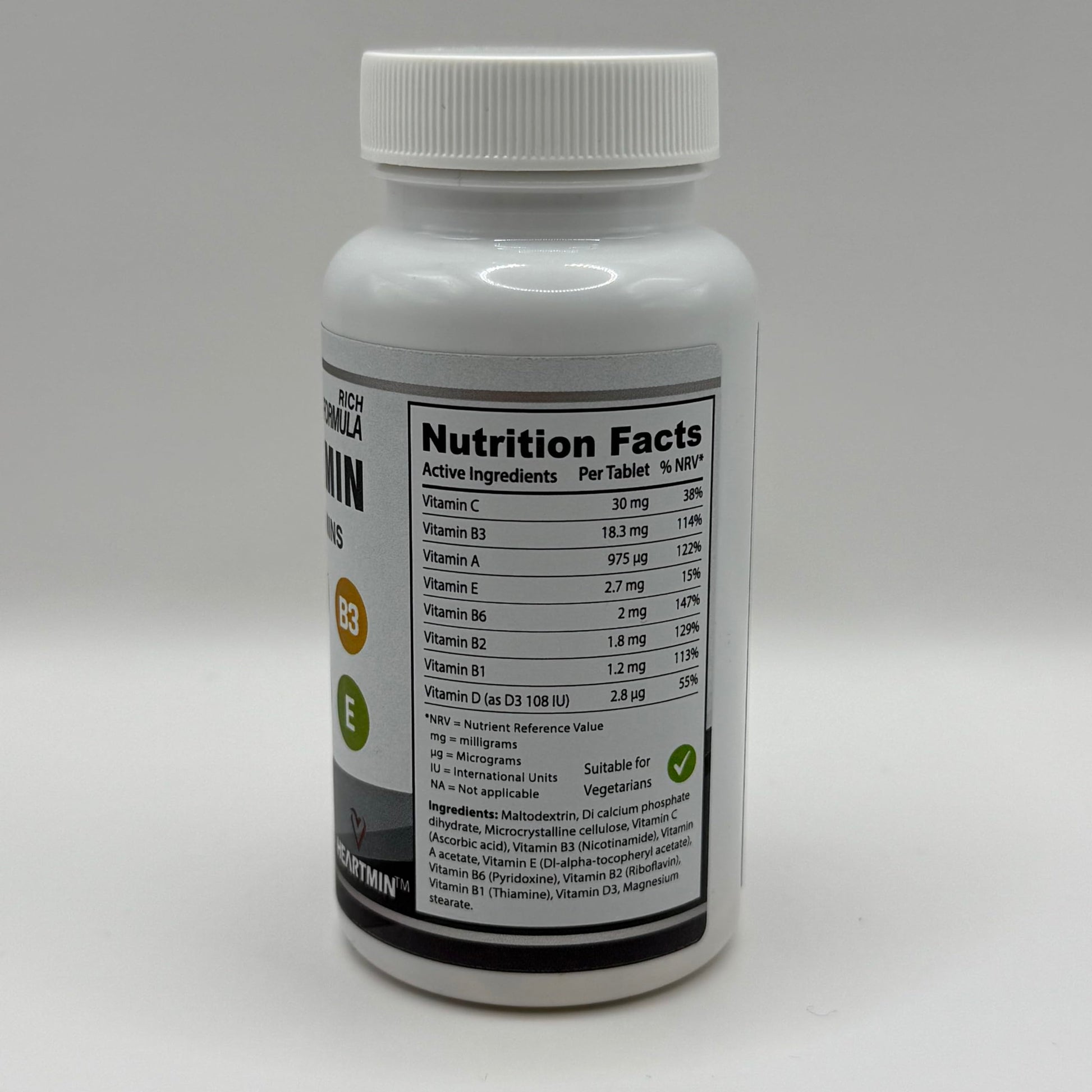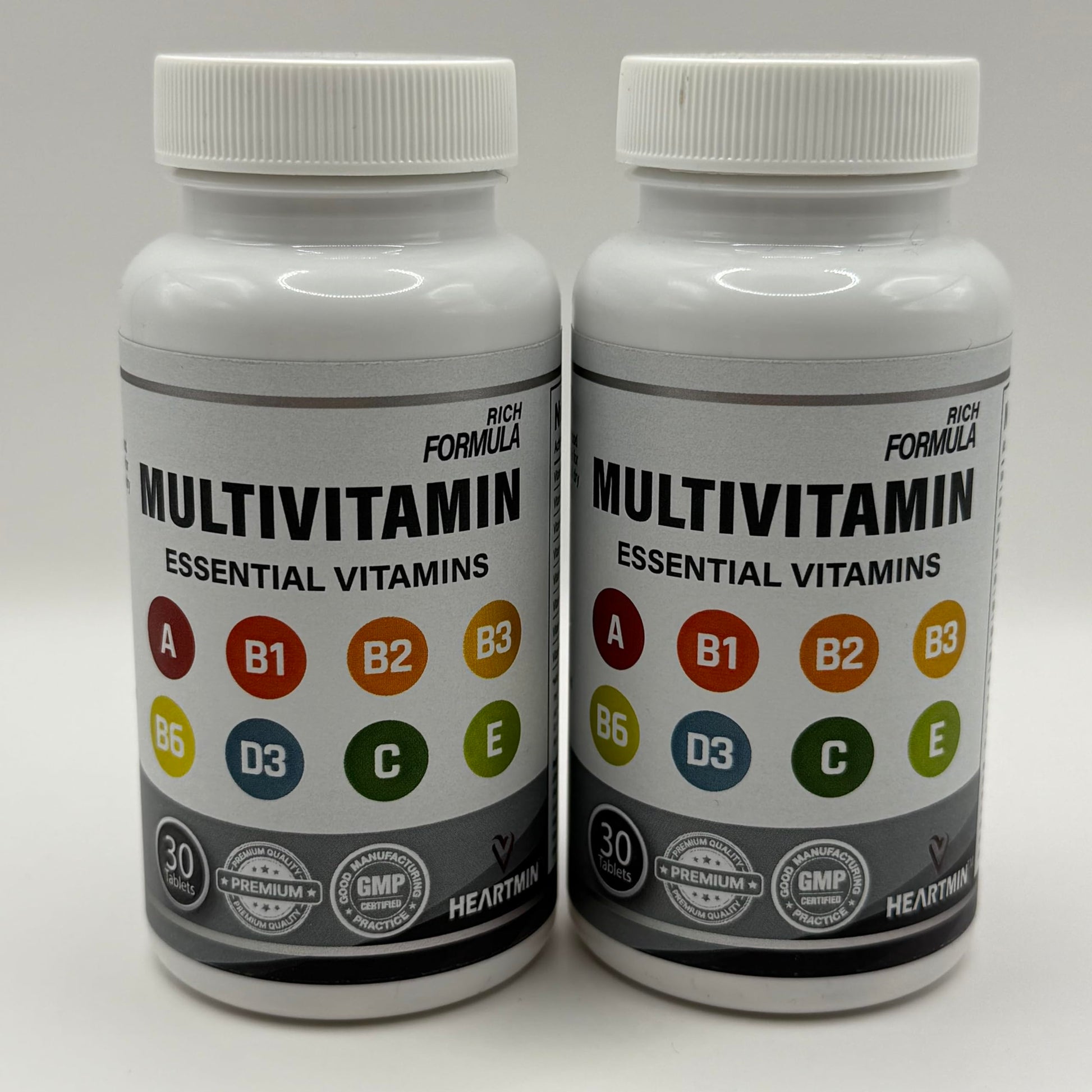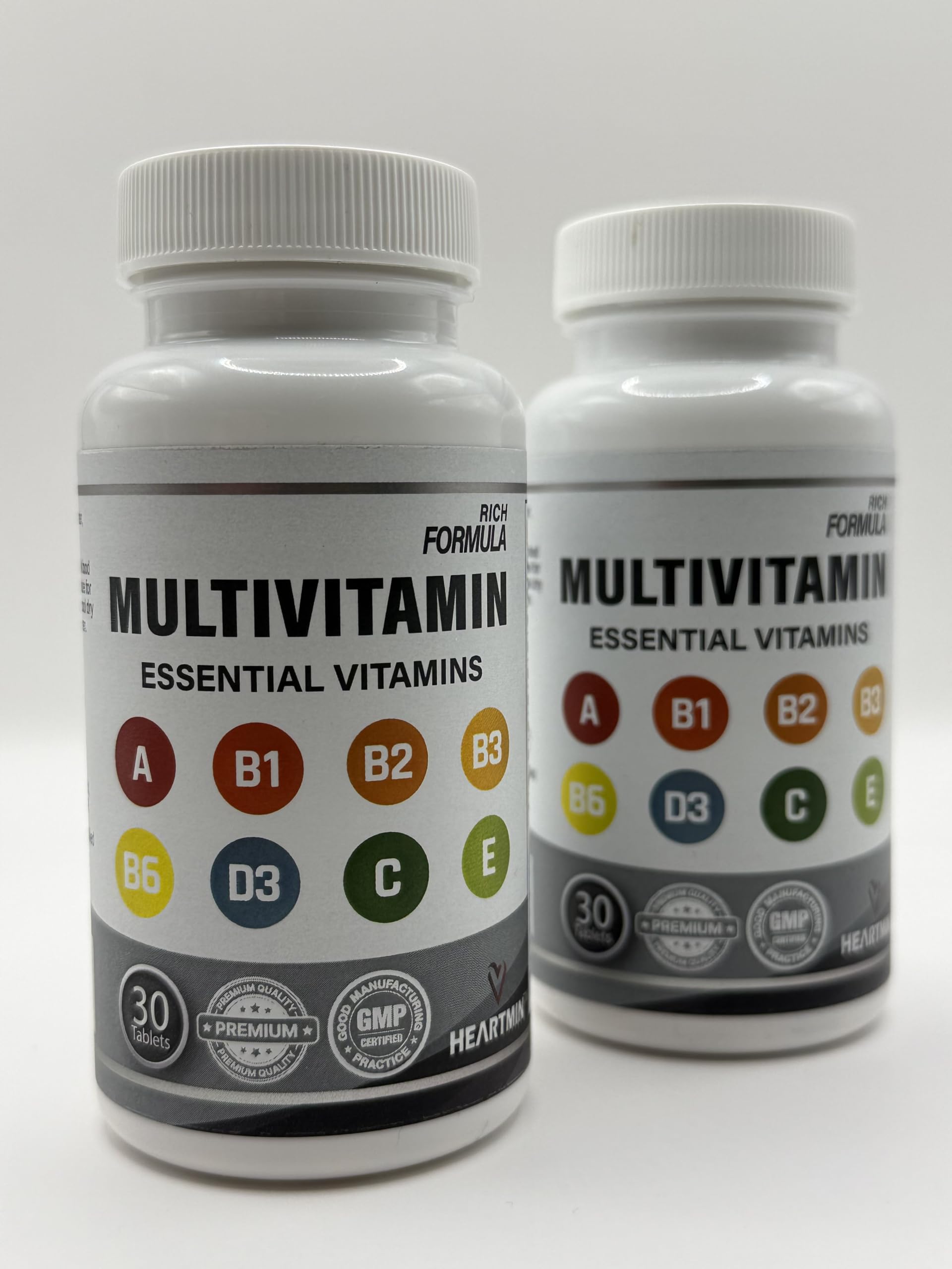 Heartmin Ultra-Potency Multivitamin for Men & Women - 30 Vegetarian Tablets with Essential Vitamins A, B1, B2, B3, B6, D3, C, E - Daily Immune, Energy & Bone Support - Ages 12+ (1-Month Supply)