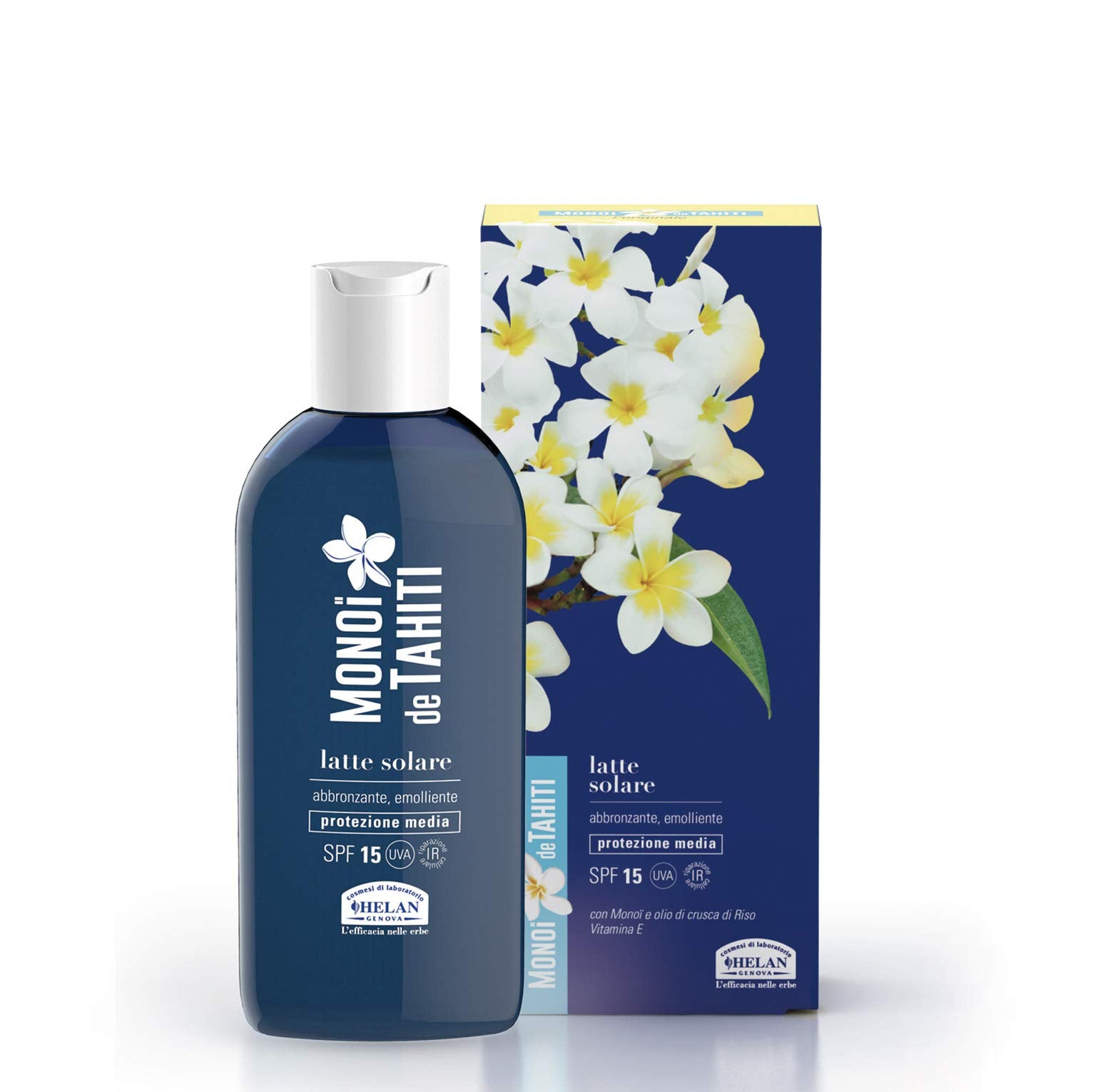 Helan Monoi De Tahiti - Face and Body Tanning Accelerator, Body Milk & Tanning Moisturiser with Natural Tan Accelerator, Tanning Cream & Sunscreen with Sun Protection SPF 15 - Made in Italy, 200 ml