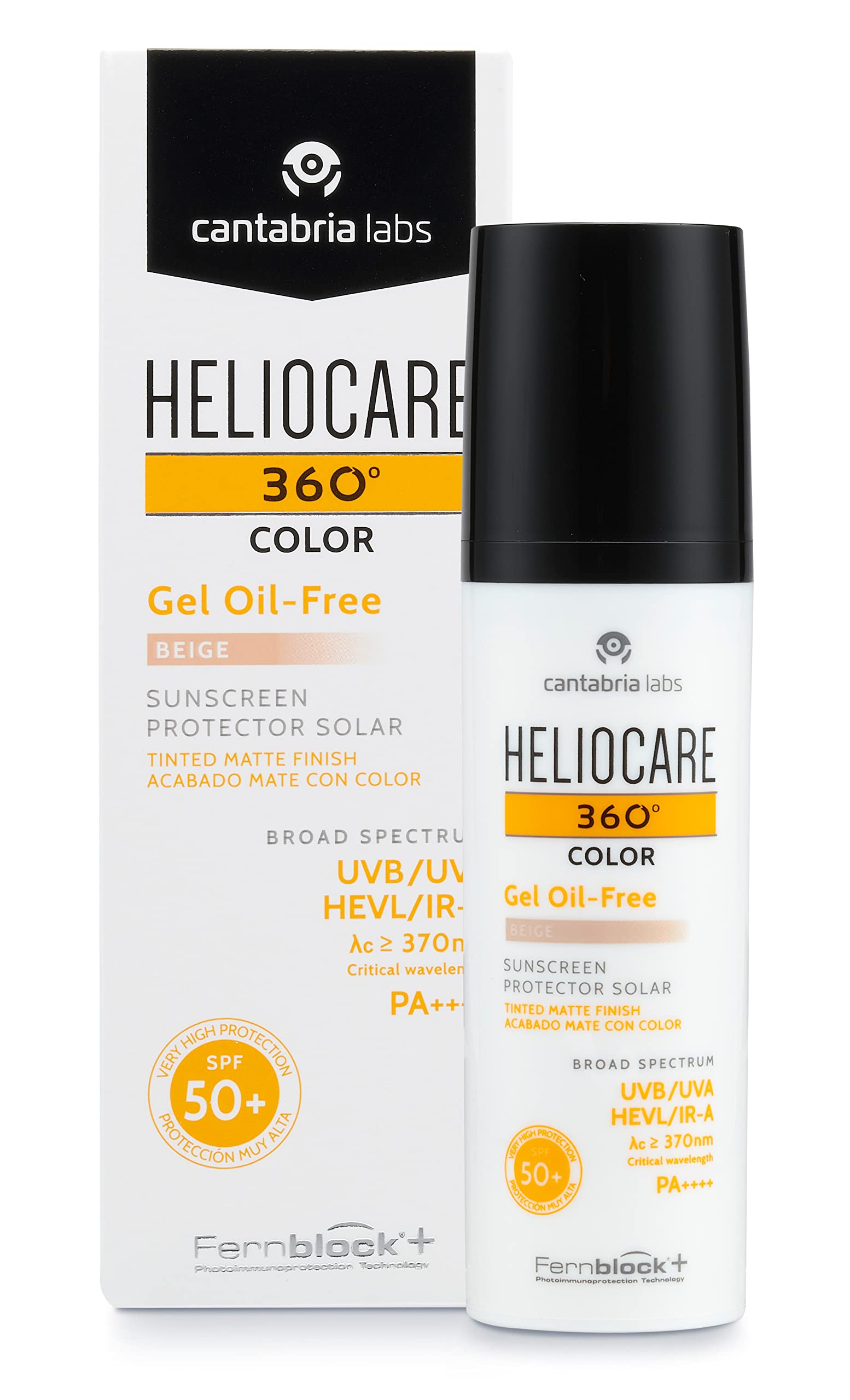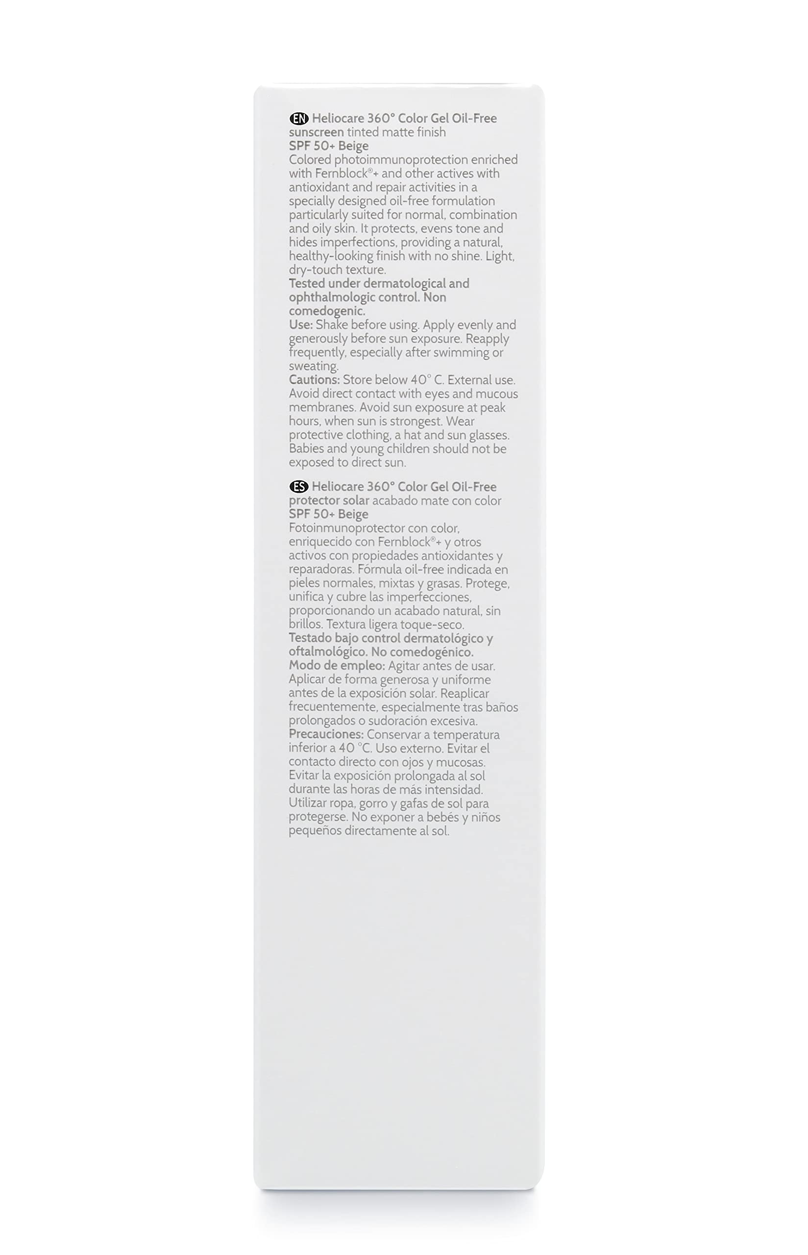 Heliocare 360 Color Gel Oil-Free Beige SPF 50 50ml / Gel Sunscreen For Face/Daily UVA UVB Visible Light Infrared-A Anti-Ageing Sun Protection/Matte Foundation Coverage