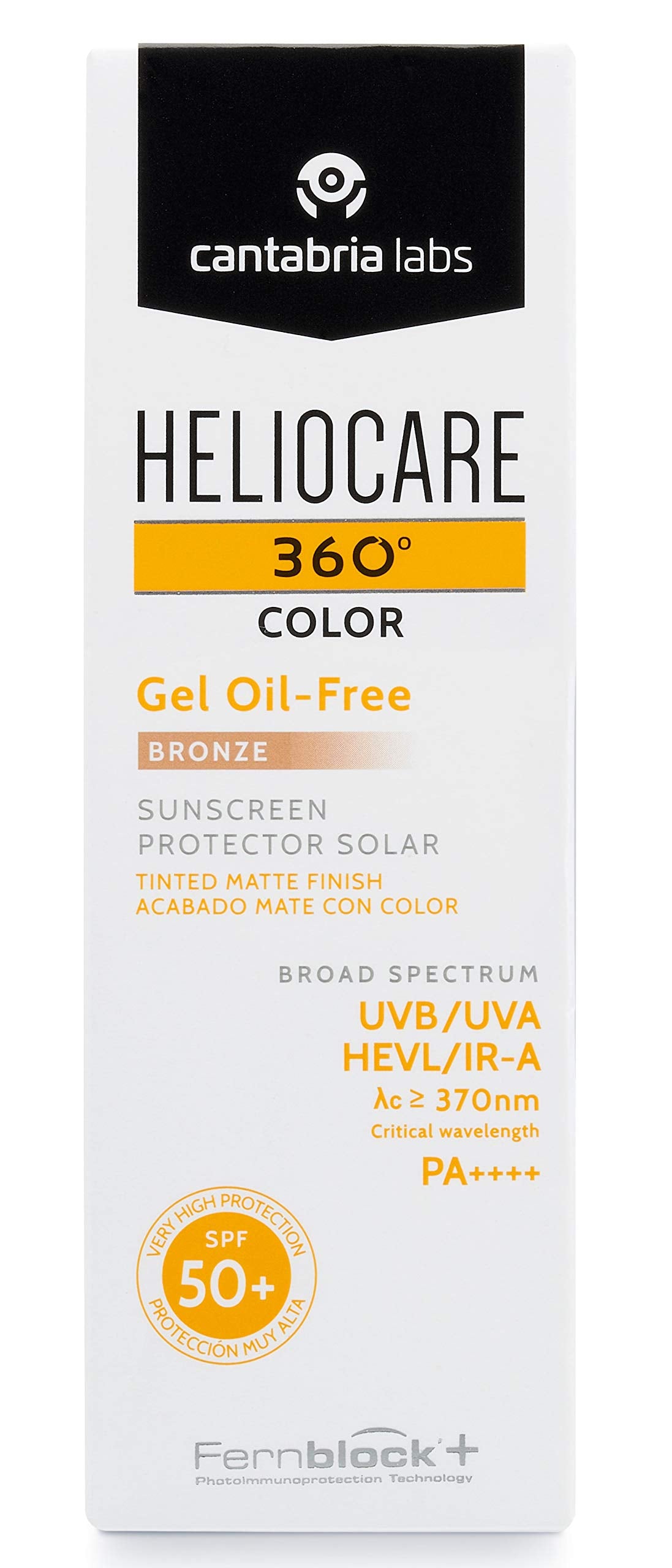 Heliocare 360 Colour Gel Oil-Free Bronze SPF50+ 50ml / Sunscreen For Face/Daily UVA UVB Visible Light Infrared-A Anti-Ageing Sun Protection/Matte Foundation Coverage