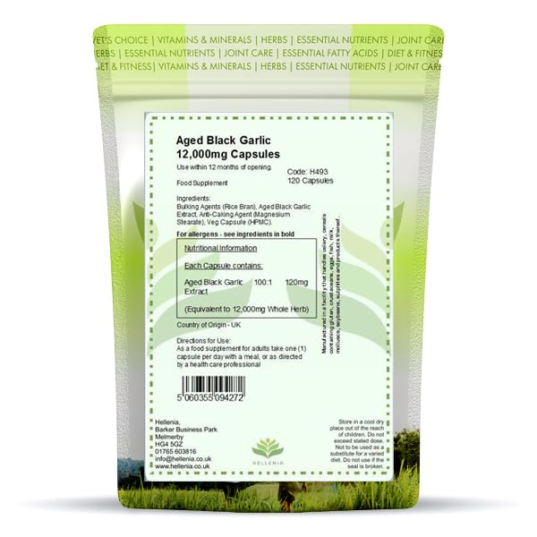 - ✔ WHY HELLENIA’S AGED BLACK GARLIC? – Our Aged Black Garlic contains 12,000mg. Black garlic is rich in amino acids, and boasts higher antioxidant levels than white garlic, contributing to its various health benefits. Black garlic has more of a compound called SAC (S-Allylcysteine), which helps the body to absorb allicin.