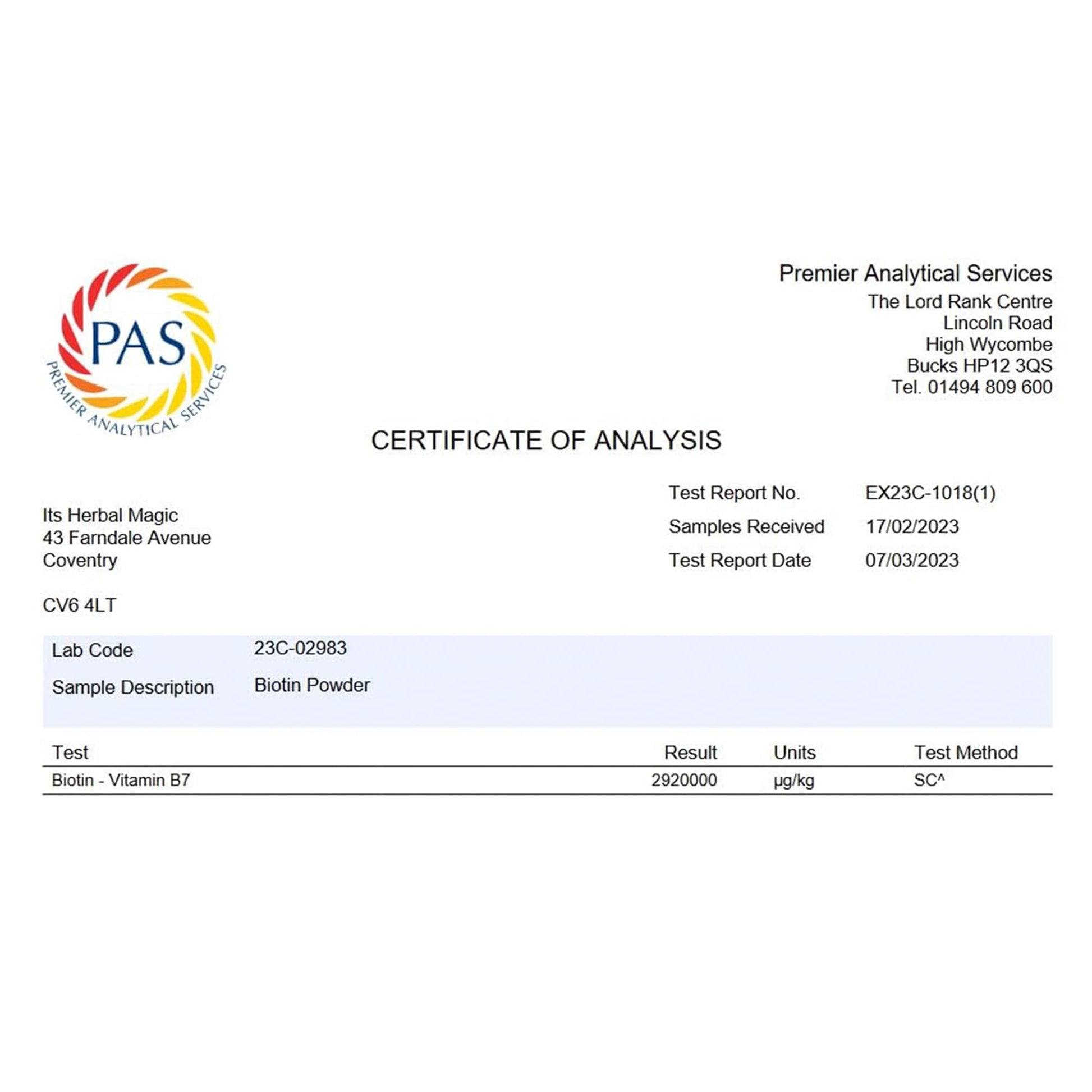 Herbal Magic's Pure & Natural Blend - Biotin Powder (10,000 mcg in 1 Scoop) - UKAS LAB Tested in UK - Made from 14 x Fruits, Vegetables & Herbs - No fillers/Preservatives/Color/Maltodextrin- 100gms