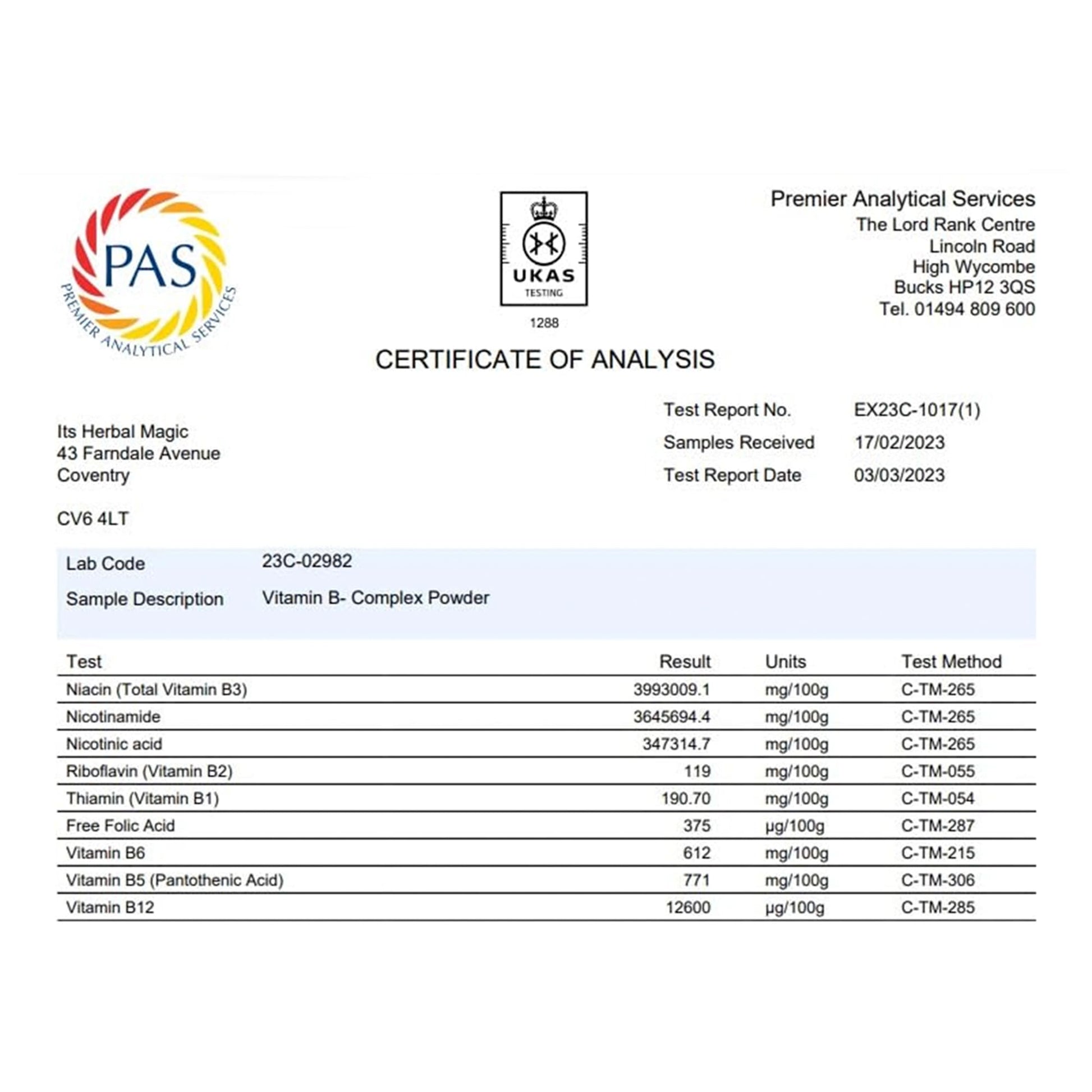 Herbal Magic's Pure & Natural Blend -Vitamin B-Complex 60 Veg Capsules - Made from 14 Different Fruits, Vegetables & Herbs UKAS LAB Tested in UK No Fillers/Colors/Preservatives/maltodextrin