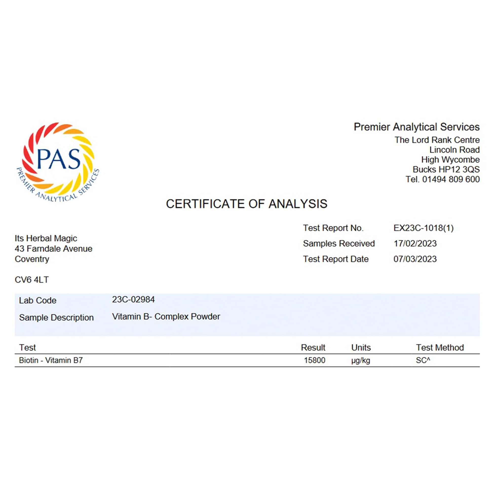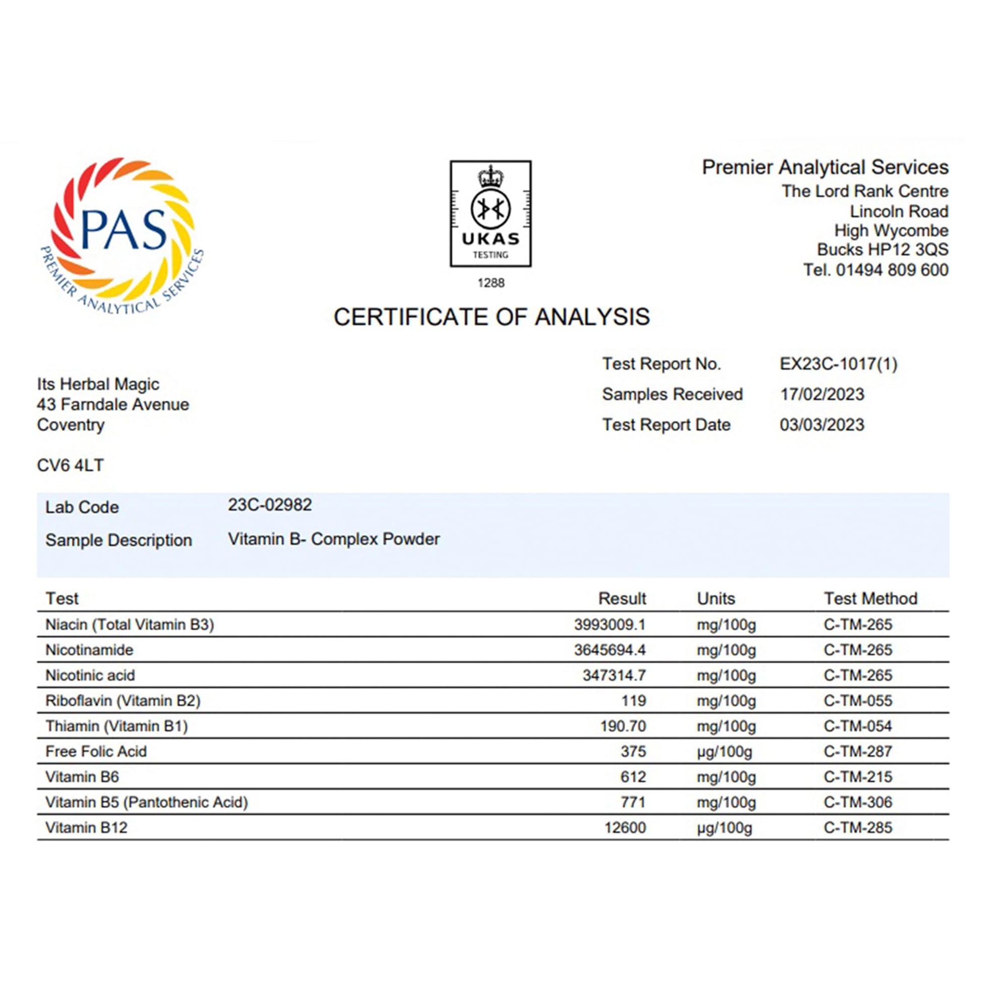 Herbal Magic's Pure & Natural Blend -Vitamin B-Complex Powder - Made from 14 Different Fruits, Vegetables & Herbs UKAS LAB Tested in UK No Fillers/Colors/Preservatives/maltodextrin-100g