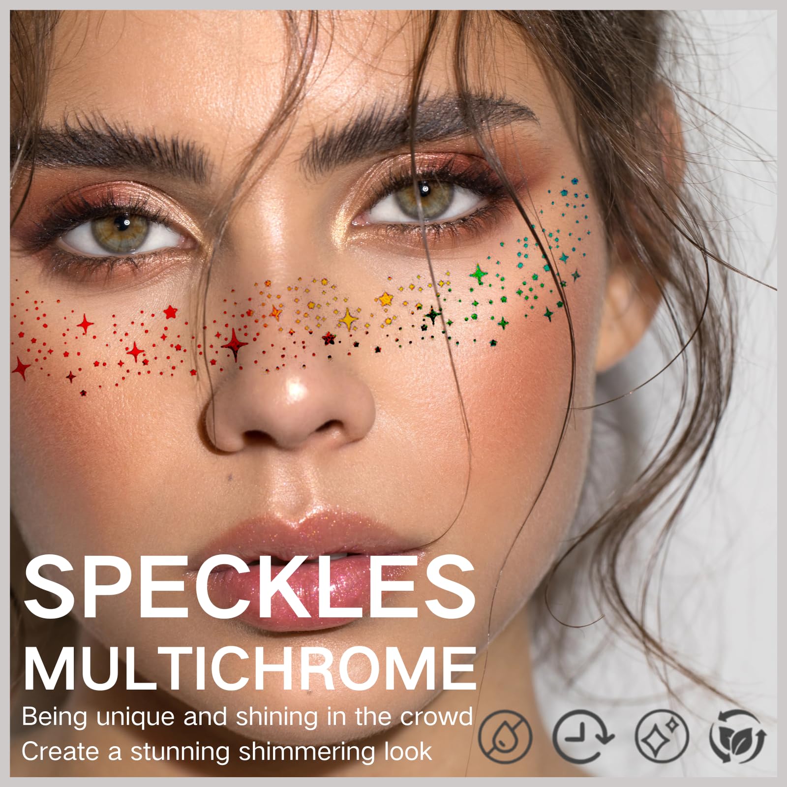 Dazzling Holographic Freckle Tattoos: Captures and reflects light for a 3D glittering effect—perfect for bold temporary tattoos or creative face glitter.