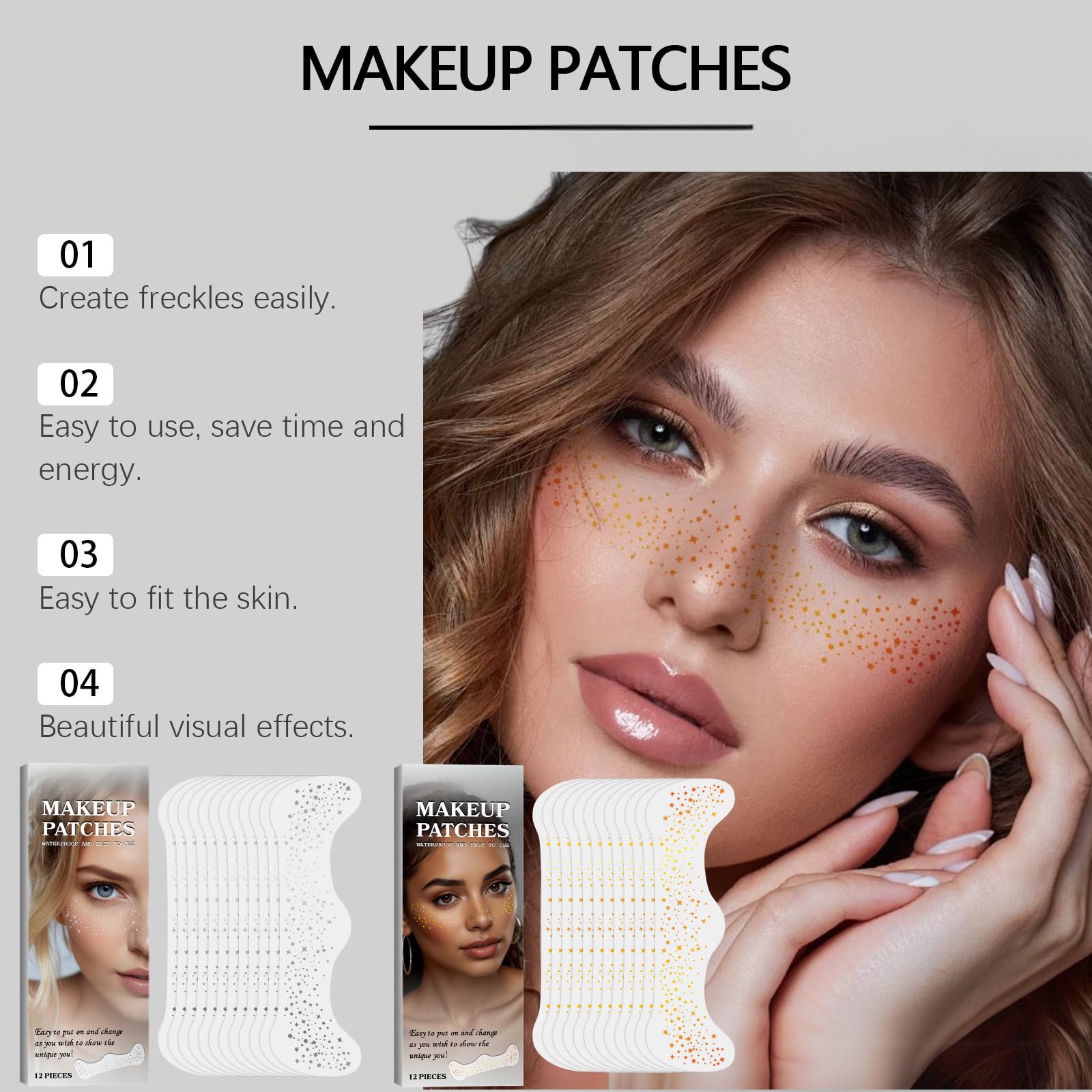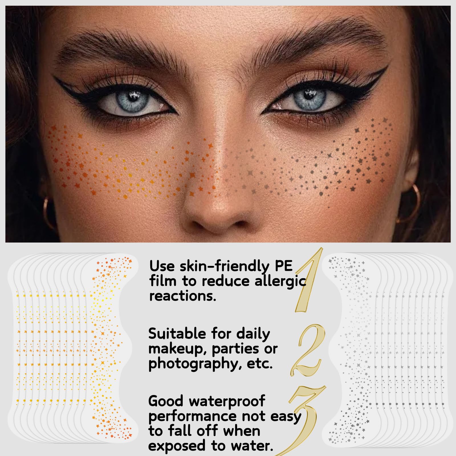2.These stickers seamlessly blend with your skin tone, adding a natural freckled look with a radiant, high-gloss finish. Perfect for creating a dewy, sun-kissed complexion.