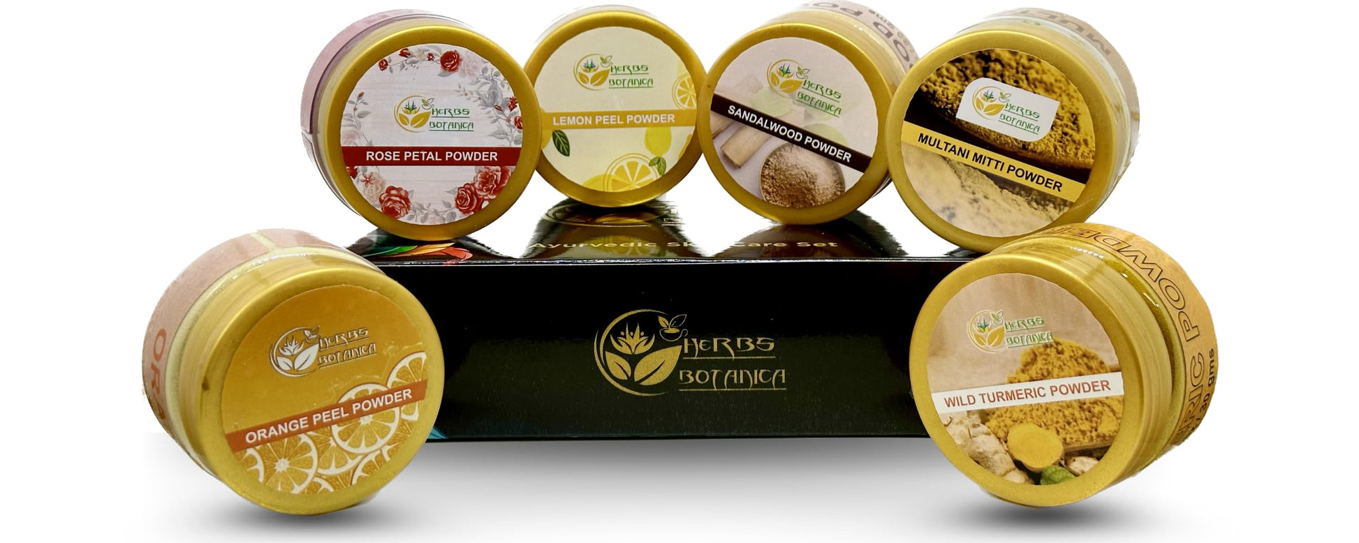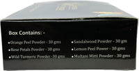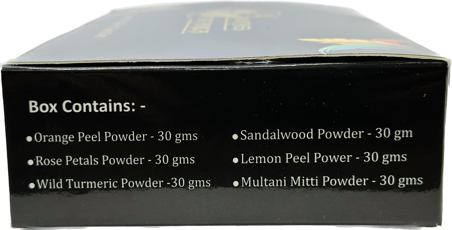 Introducing our Herbs Botanica Natural Radiance Skin Care Sampler, a harmonious blend of botanical wonders designed to unveil your skin's true brilliance. Elevate your skincare journey with the power of ancient remedies and modern luxury, all in the convenience of your home. Unlock the secrets of sandalwood, an age-old beauty treasure cherished for its calming properties and natural radiance enhancement. Our sampler brings you sandalwood powder in its purest form, allowing you to craft revitalizing face masks and scrubs that soothe, nourish, and rejuvenate. Discover the citrus sensation with orange peel powder, a vibrant ingredient known for its brightening and exfoliating prowess. Incorporate it seamlessly into your skincare routine to invigorate your complexion, leaving it fresh and revitalized. Lemon peel powder takes center stage, offering a zestful experience that promotes a youthful glow. Uncover the benefits of its natural exfoliation, aiding in refining your skin's texture while supporting a luminous appearance. Indulge in the elegance of rose petals powder, as time-tested as it is enchanting. Immerse yourself in the luxurious world of roses, harnessing their gentle yet effective properties to pamper your skin, leaving it feeling velvety soft. Explore the magic of wild turmeric powder, celebrated for its anti-inflammatory and antioxidant attributes. Embrace this holistic treasure to promote clear, vibrant skin, embracing its potent benefits as part of your daily routine. The legacy of multani mitti powder unfolds before you, a gift from nature itself. With its cleansing and purifying prowess, it caters to a variety of skin types, particularly those seeking balance and a rejuvenated complexion. Crafted with care, our sampler empowers you to concoct personalized beauty rituals. Mix and match these potent powders to create tailor-made solutions that address your unique skin needs. Unveil your skin's true potential with a touch of timeless wisdom.More Info