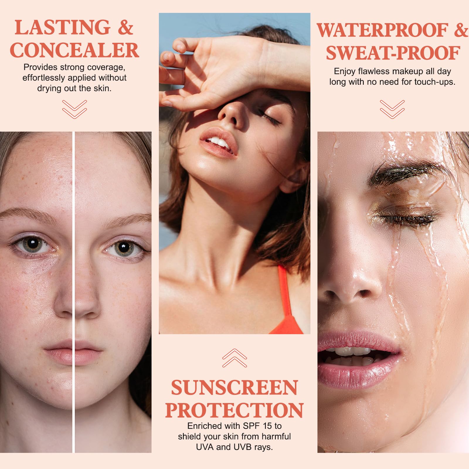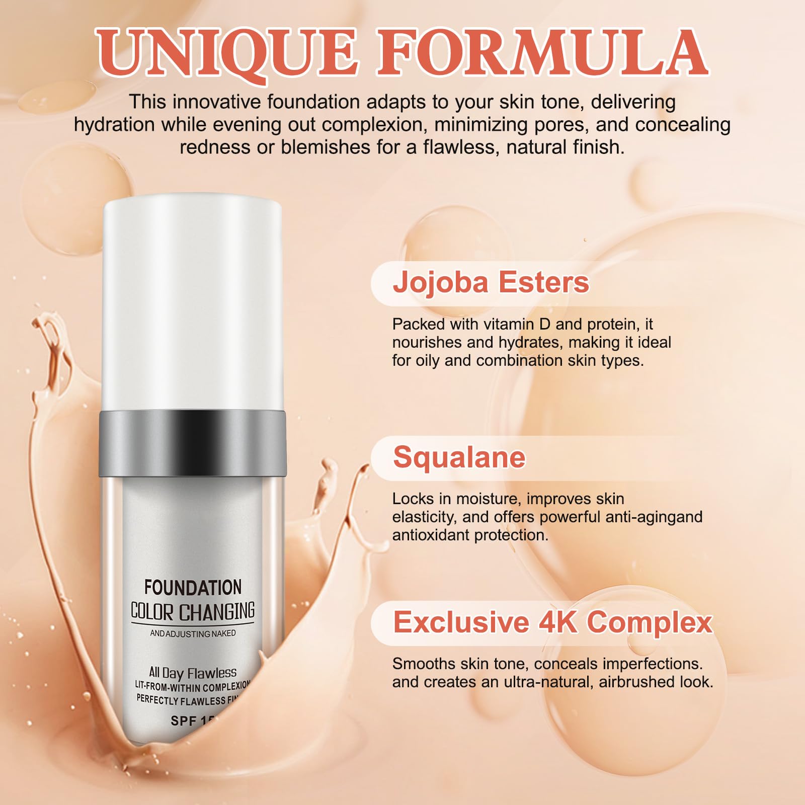 HEXIN TLM Color Changing Foundation, Colour Changing Foundation for Mature Skin, Long Lasting Waterproof Makeup Base Nude Face Cover Concealer Cream SPF (30 ml,2 Pack)