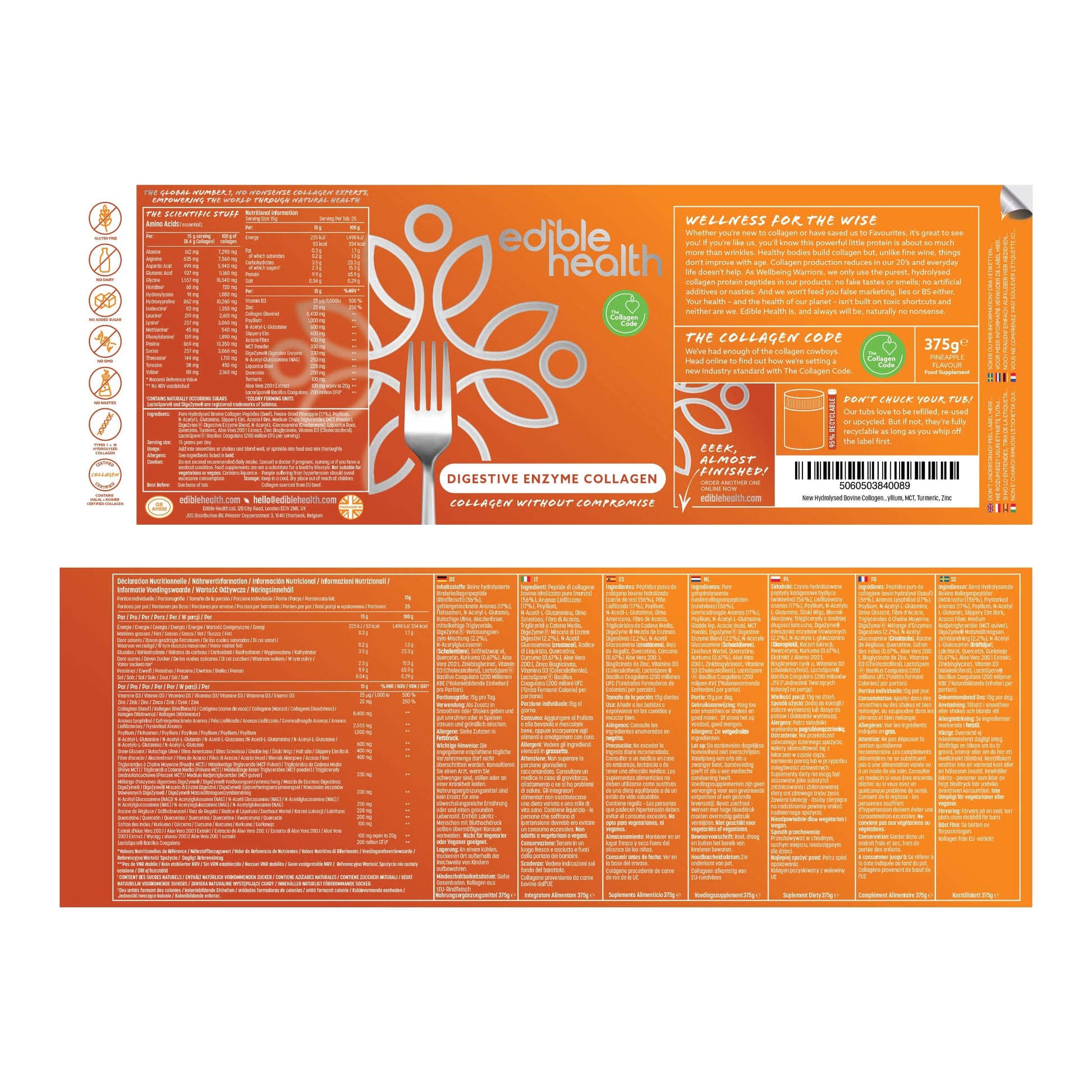Our Digestive Enzyme Collagen Powder is available in a 375g tub, which lasts about a month. If you're not completely sure and just want to give it a try, we also have a 100g trial pouch. To reduce costs and single use plastic, we have eliminated a scoop, allowing you control your dose. Each batch lasts up to three years post manufacturing.