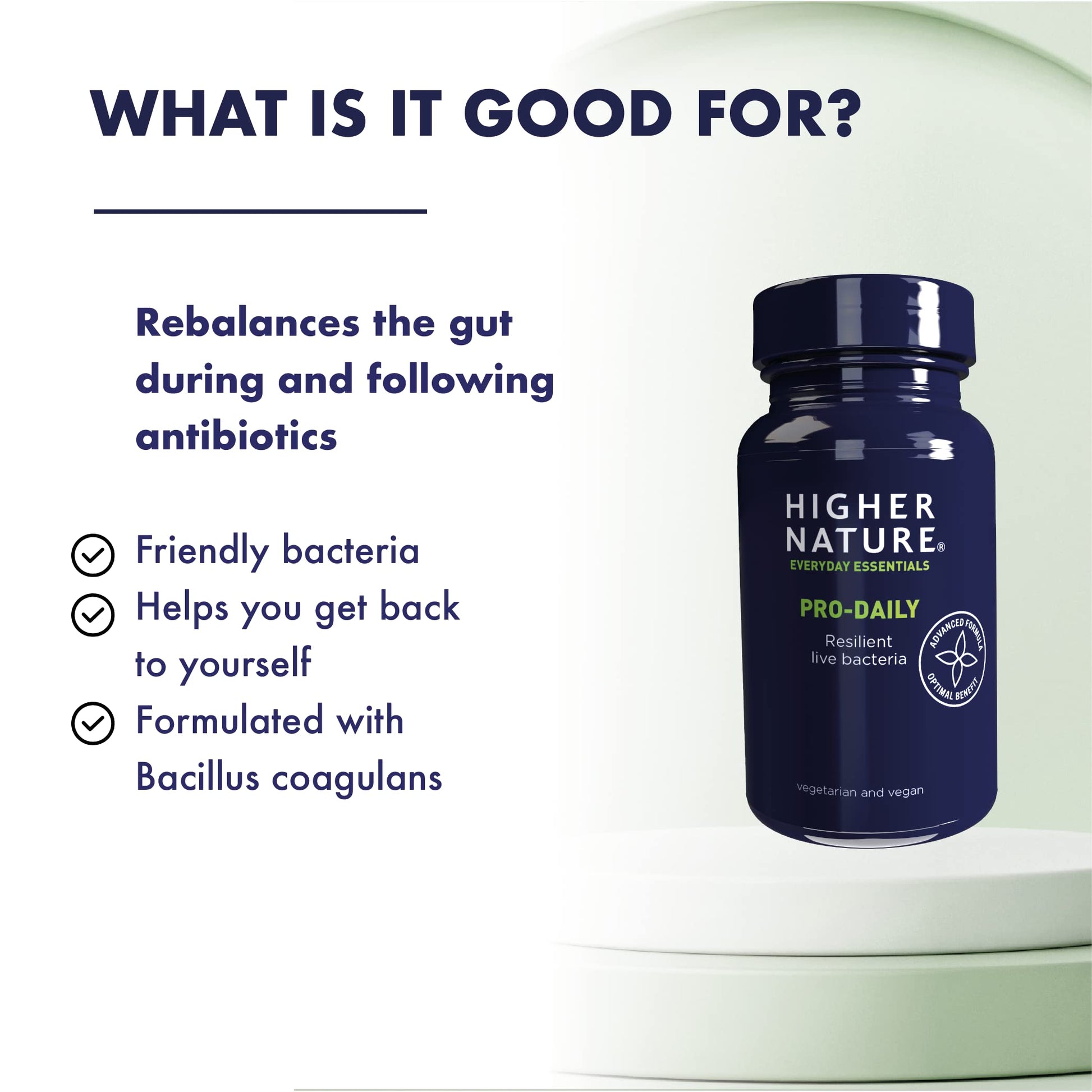 - GOES WELL WITH: Pro Daily can be paired with the following Higher Nature products including Vitamin D, Immune plus, Any of our multivitamins and Omegas, any of the other probiotics, Citricidal, Oregano oil and Candiclear
