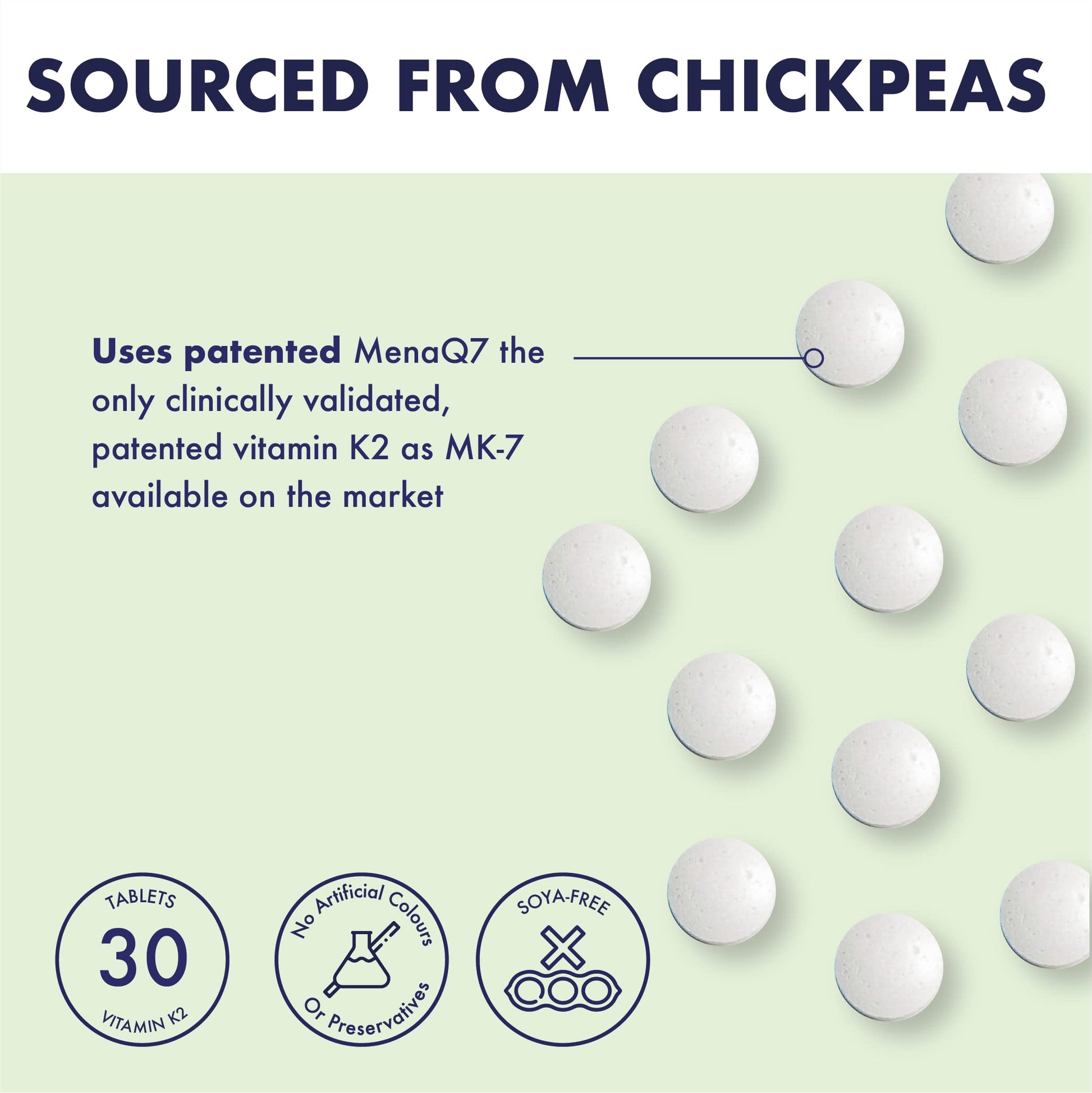 - SUPPORTS BONES & CARDIOVASCULAR HEALTH: Vitamin K is an essential fat soluble vitamin which contributes to the maintenance of normal bones and normal blood clotting. As it is found in leafy green vegetables and some cheeses, those with low dietary intakes are at an increased risk of deficiency. Sourced from chickpeas, our Vitamin K2 is soya-free.