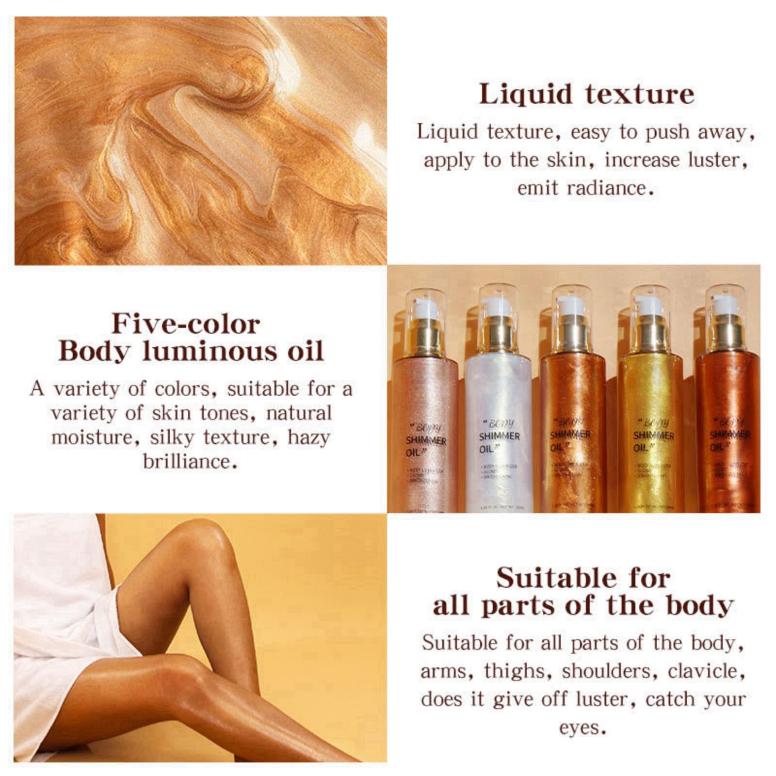 1.This body oil creates a subtle glow enhances natural skin tone.