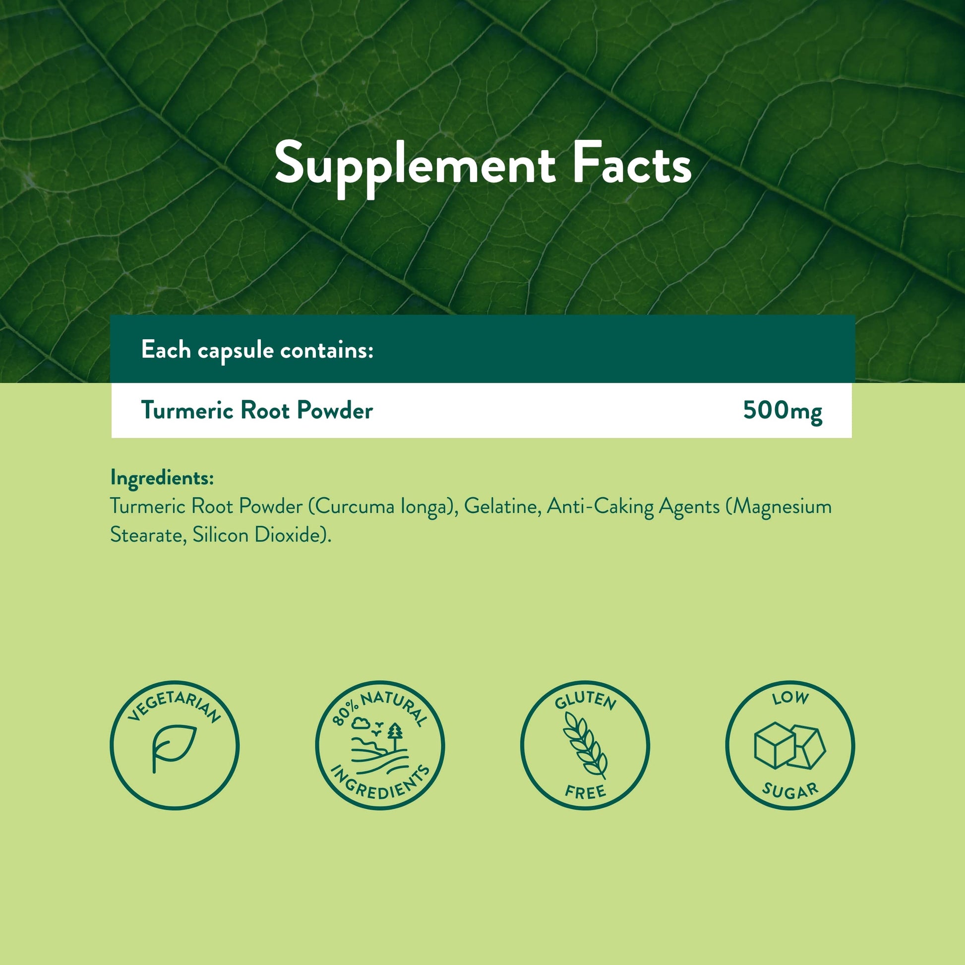 - 500mg of High-Quality Turmeric: A natural herb food supplement that supports joint health and flexibility