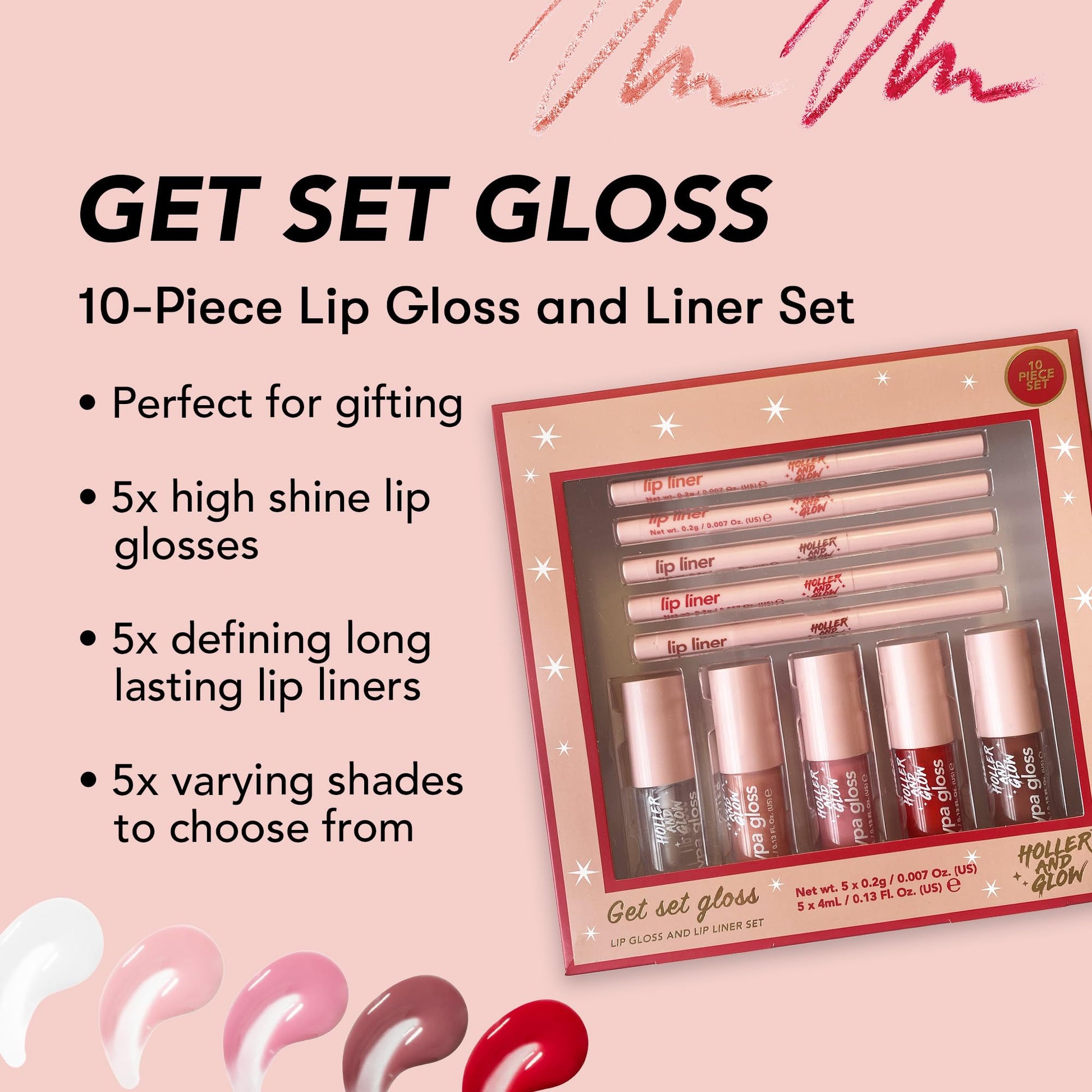 Holler and Glow Get Set Gloss Lip Liner and Lip Gloss 10-Piece Gift Set, Includes Lip Liners and Colour Matched Lip Glosses