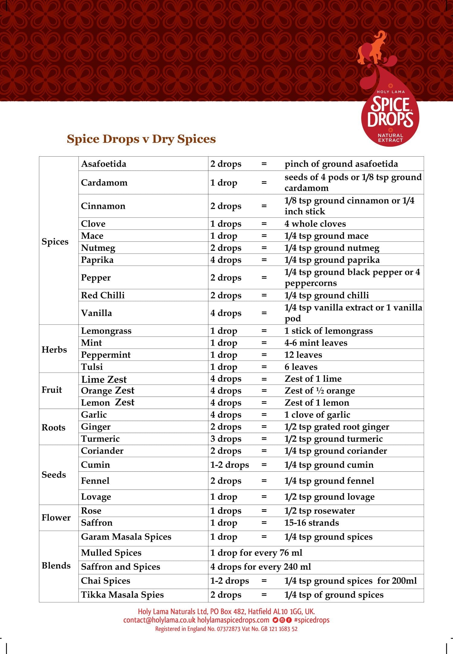 Holy Lama Spice Drops Turmeric Extract - Natural Cooking Ingredient. Savoury, Asian, Thai, Chutneys or Healthy Recipes 1 x 100ml Bottle