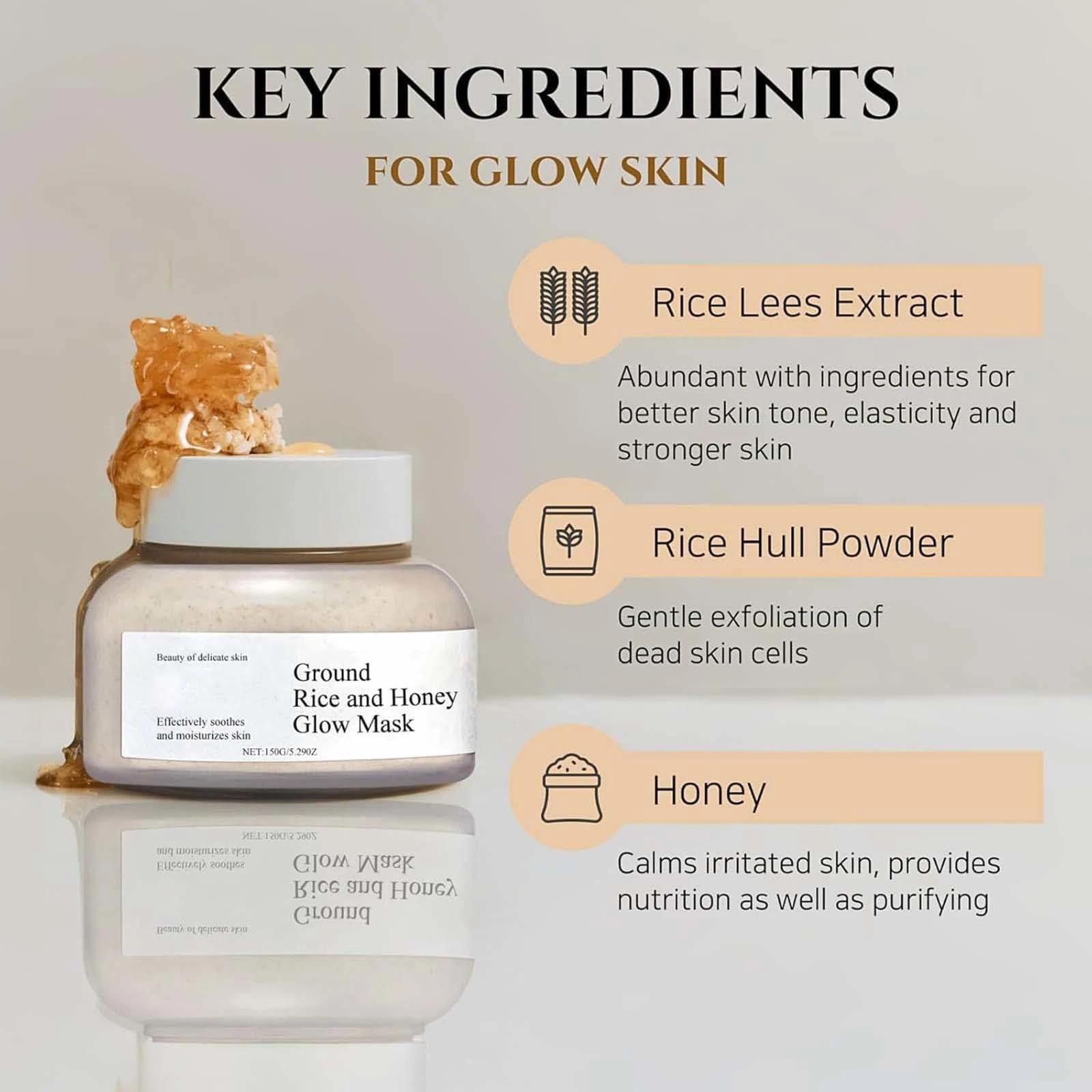 Honey Glow Clay Mask with Ground Rice, Pore Minimizing & Brightening Face Mask, Hydrating & Deep Cleansing, Reduction, Skincare