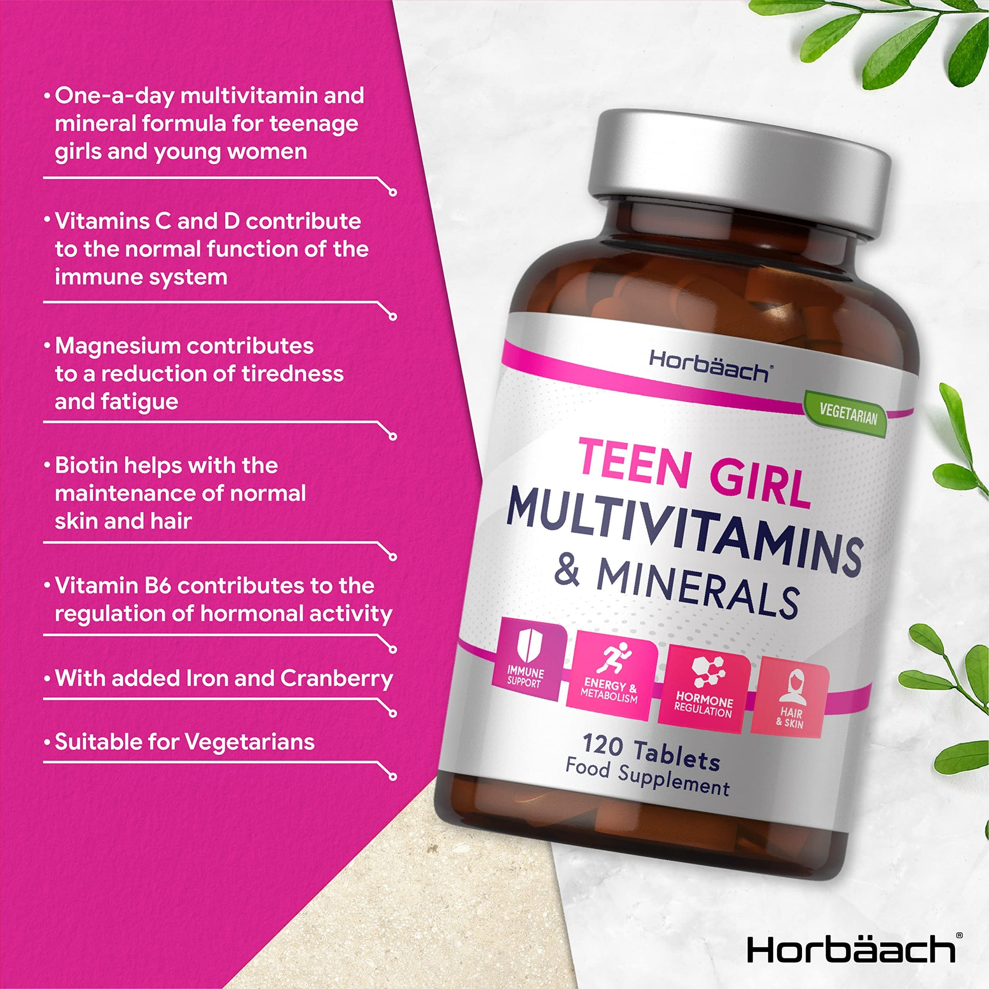 Horbäach Multivitamins and Minerals for Teen Girls | 120 Tablets | 15 Essential Nutrients for Everyday Health & Wellness | by Horbaach