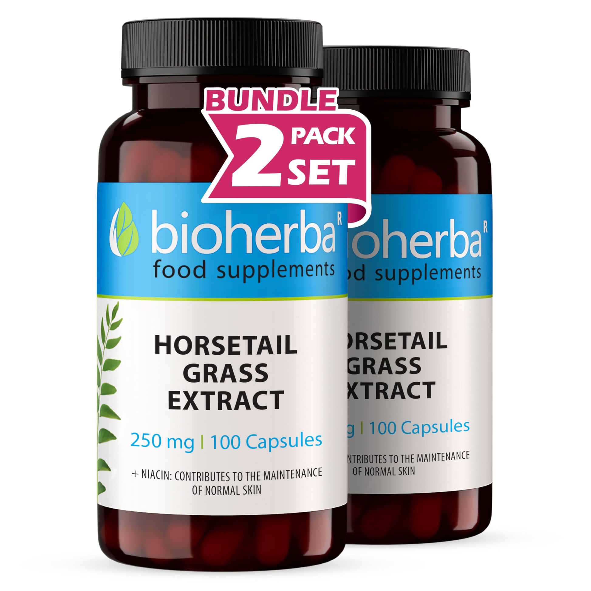 Horsetail Grass Extract 250 mg - 200 Capsules by BIOHERBA | Natural Silica-Rich Supplement for Hair Skin Nails and Bone Health