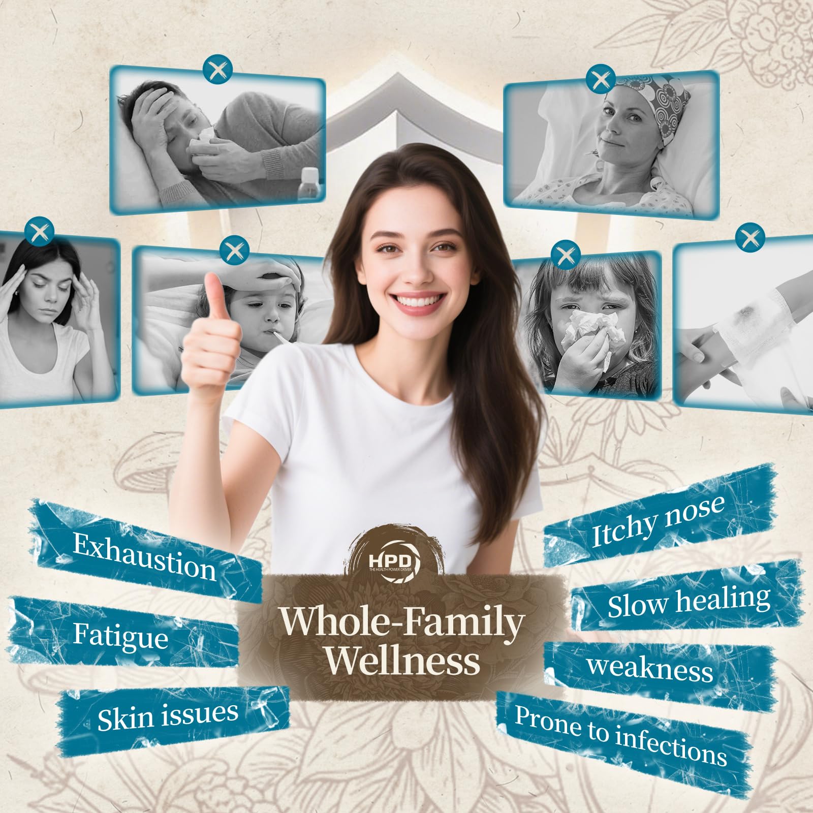 HPD THE HEALTH POWER DRIVER – Immune Booster Supports the three major immunity barriers: Physical Barriers: Strengthens the skin and mucous membranes. Chemical Barriers: Balances body fluids and micro-ecological environments. Cellular Immunity: Enhances innate immune cells like macrophages and natural killer cells, as well as adaptive immune cells like T-cells and B-cells, boosting antibody production. Powered by a combination of immune proteins (IgG, IgM, IgA), plant and animal proteins, herbal extracts (elderberry, mushrooms), β-glucans, flavonoids, probiotics, and essential vitamins and minerals, it provides synergistic, multi-level support for the immune system. Suitable for: elderly, men, women, boys, girls, teenagers, children, and individuals with compromised immunity. Comprehensive immune support for the whole family.More Info