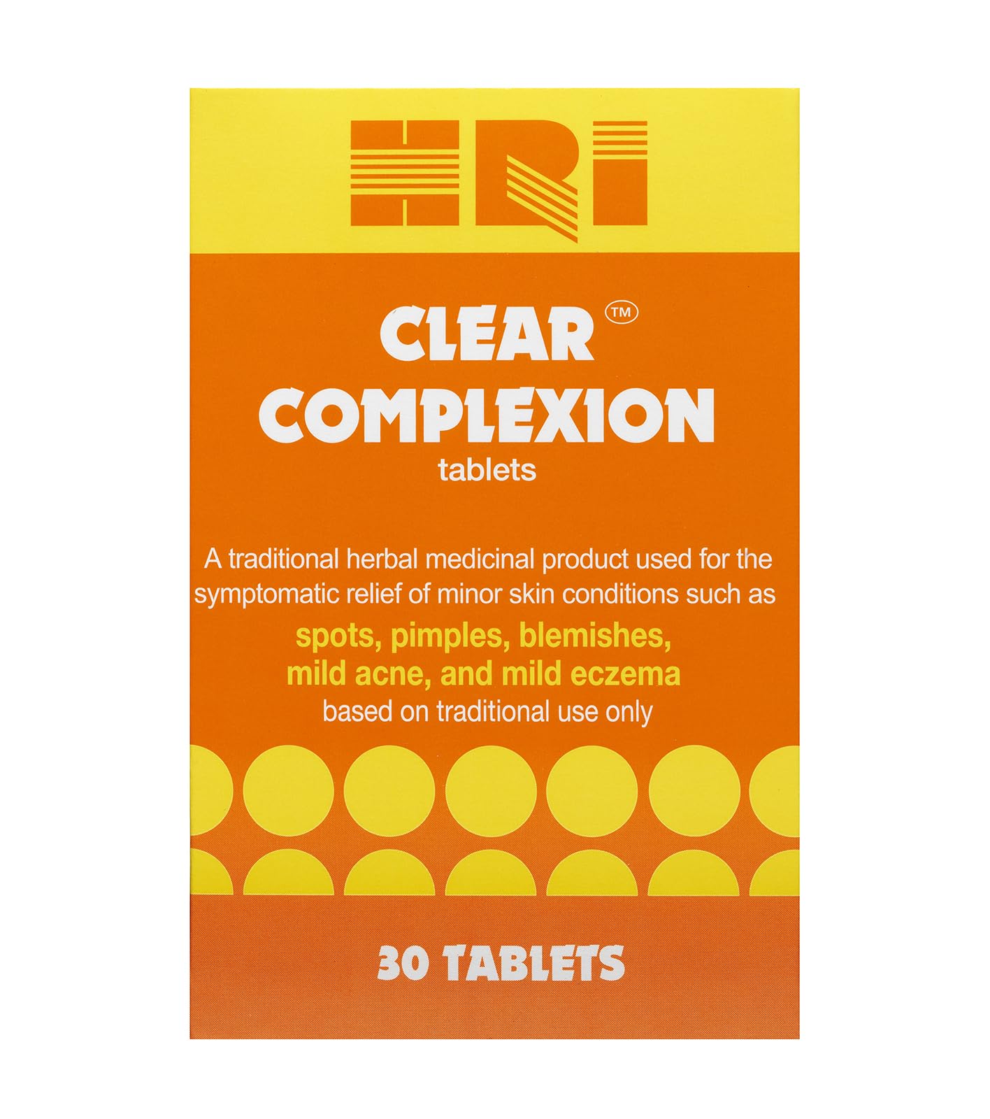 HRI Clear Complexion 30 Tablets - for Symptomatic Relief of Minor Skin Conditions Such as Spots, Pimples, Blemishes, Mild Acne, Mild Eczema. 1 Pack
