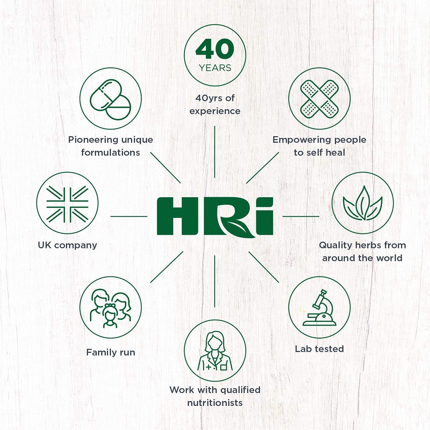 - THR (Traditional Herbal Registration) logo: HRI herbal medicines are registered through the MHRA for quality and safety, and are lab tested for ongoing safety and performance monitoring