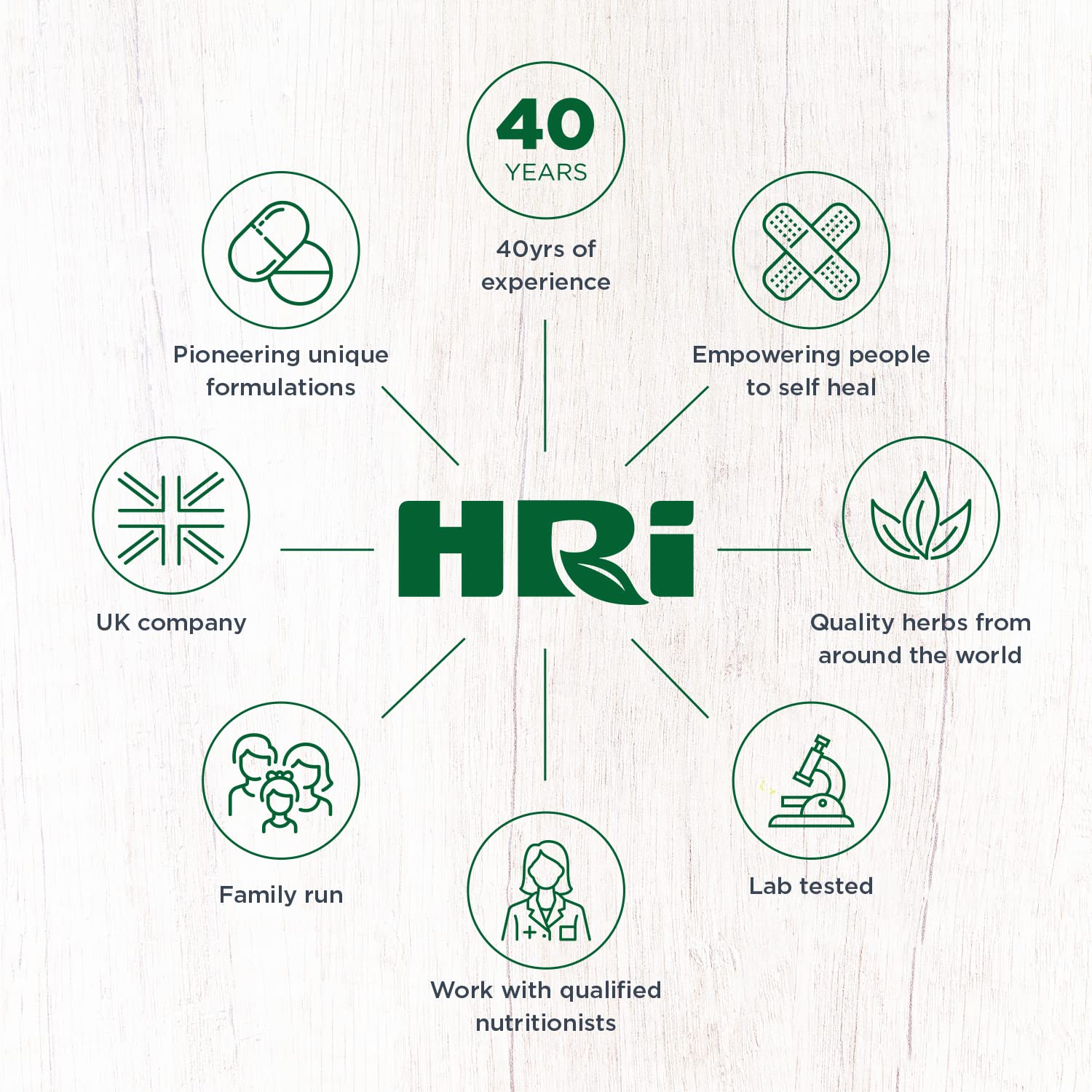 - THR (Traditional Herbal Registration) Logo: HRI herbal medicines are registered through the MHRA for quality and safety, and are lab tested for ongoing safety and performance monitoring