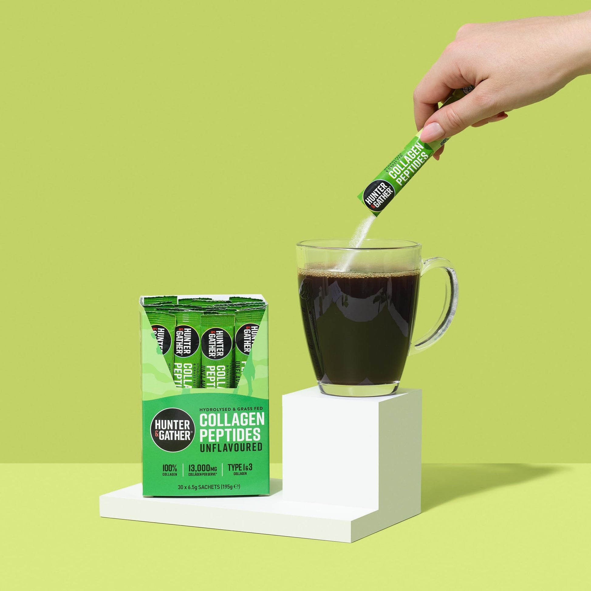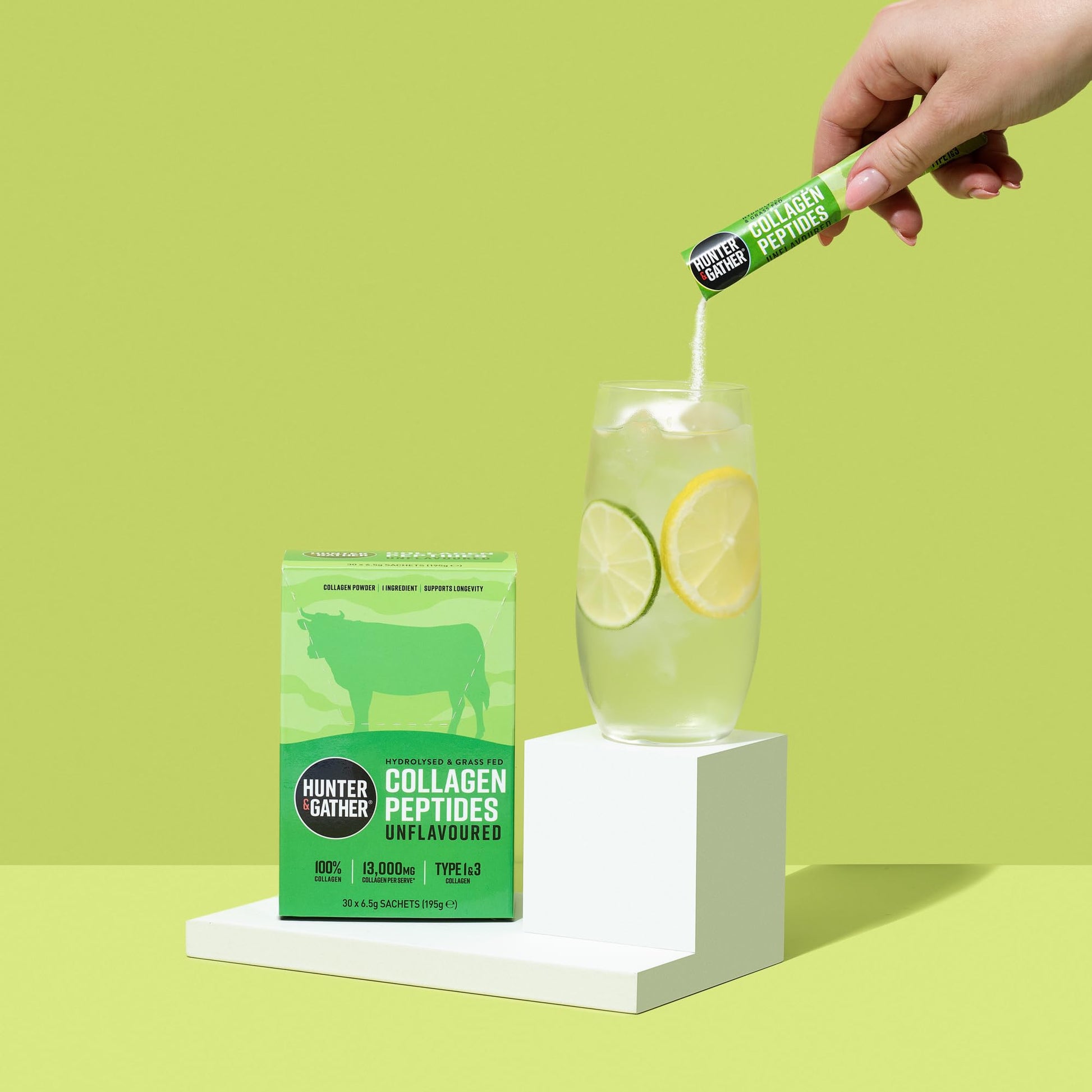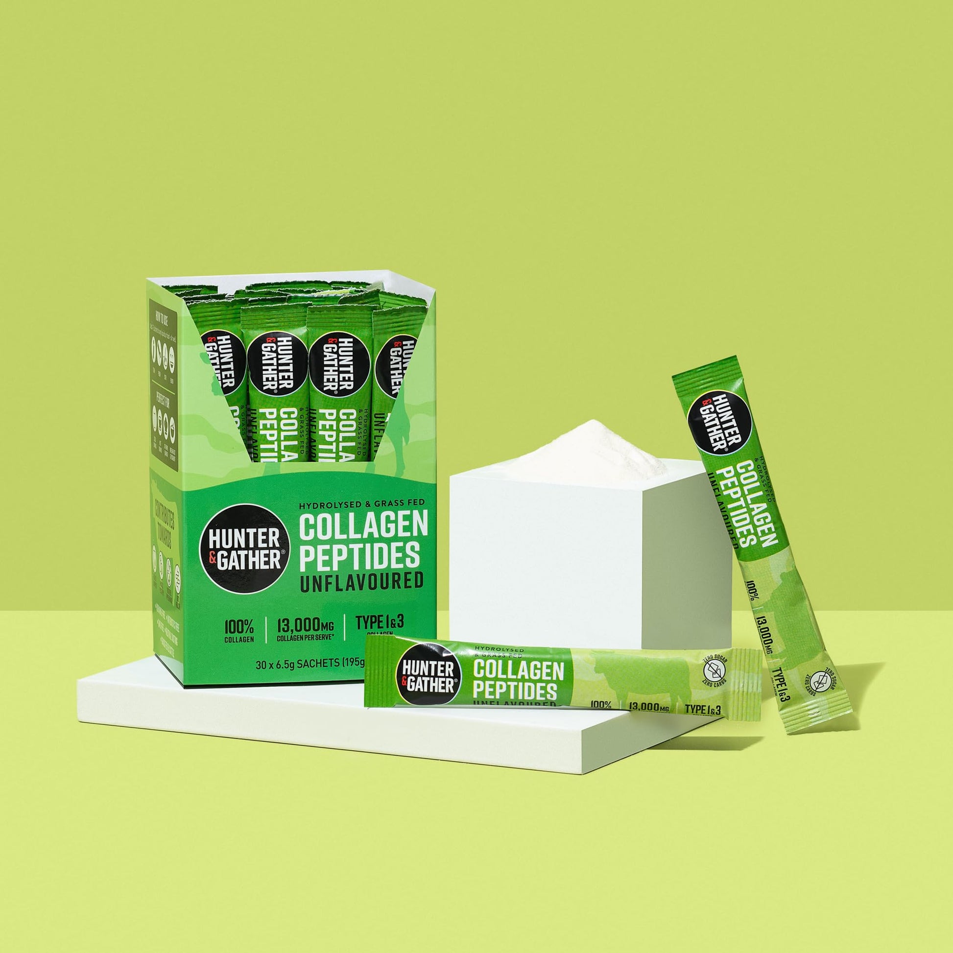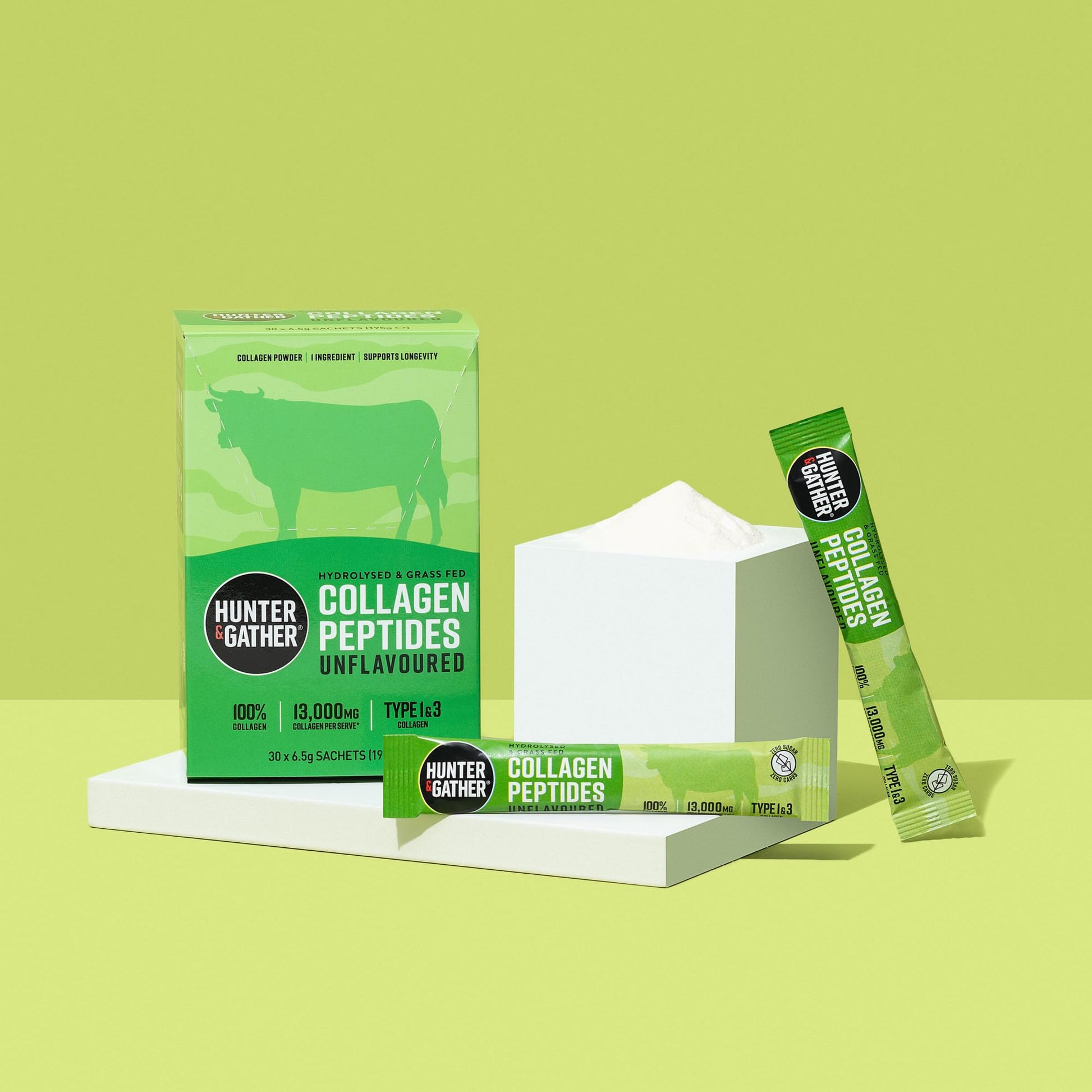 Hunter & Gather Bovine Collagen Powder 30 x 6.5g Sachets | Pure Unflavoured Premium Hydrolysed Bovine Collagen Peptides Powder for Hair Skin Nails Muscles | Collagen Supplements for Women and Men