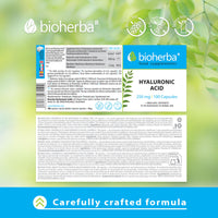 Hyaluronic Acid Supplement 250 mg - 100 Capsules by BIOHERBA Premium Joint Skin and Beauty Support