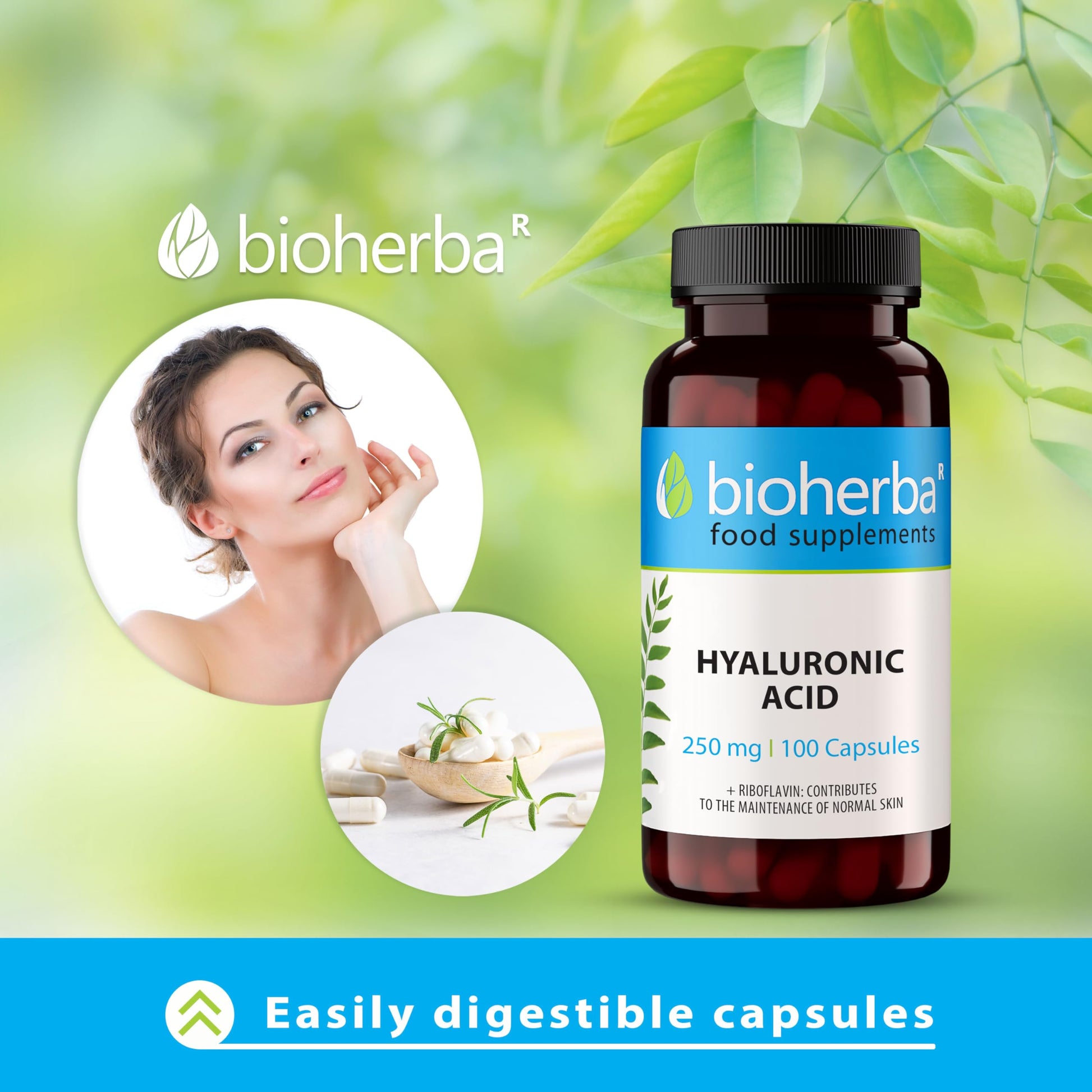Hyaluronic Acid Supplement 250 mg - 200 Capsules by BIOHERBA Premium Joint Skin and Beauty Support