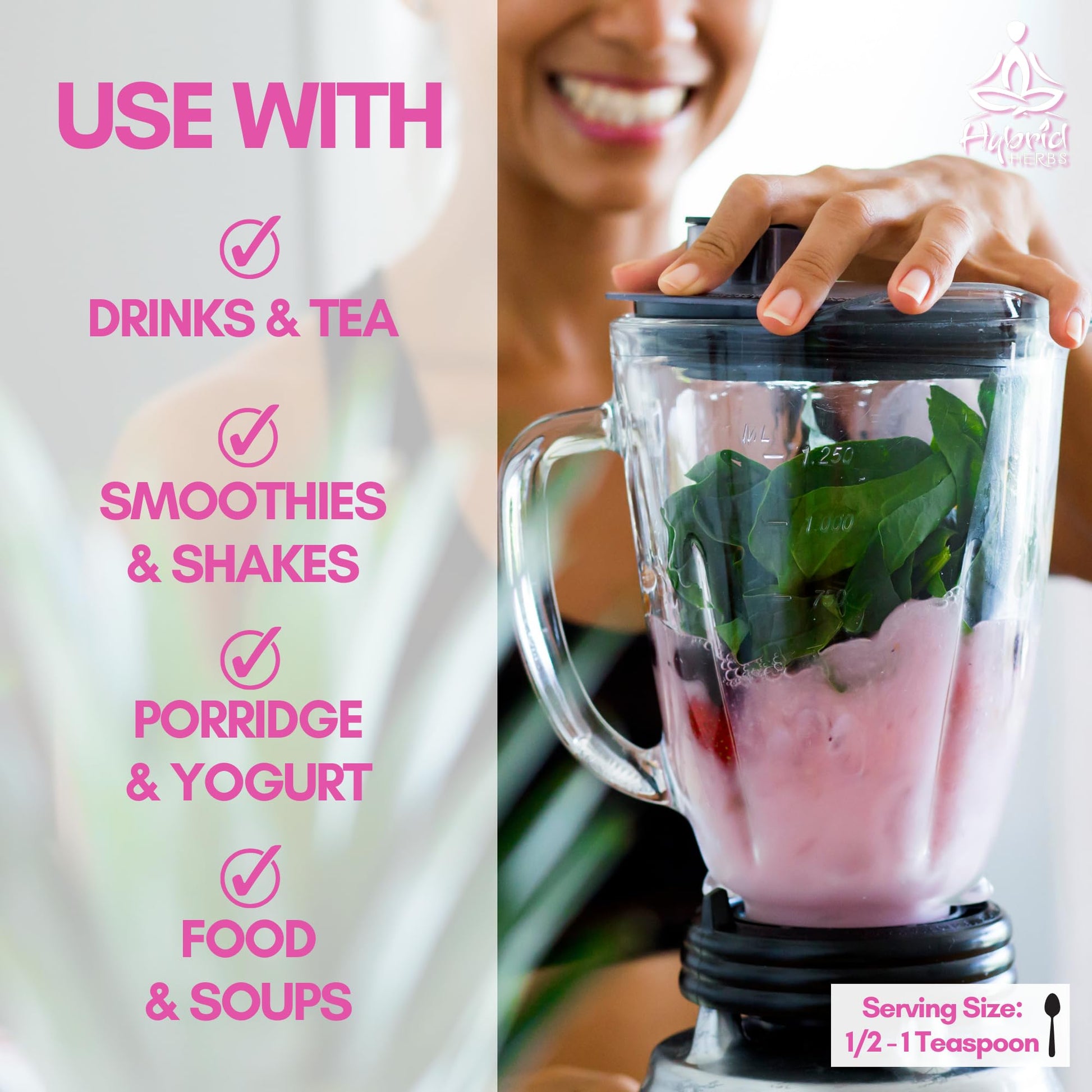 Our plant-based collagen features a special blend of Pink Pitaya, Acerola cherry, and Tremella mushroom powders. These ingredients are sourced with care, ensuring potency and ethical standards. The result is a nutritionally rich superfood powder that's known to support collagen production in the body. It nourishes the skin, promotes elasticity, and helps maintain healthy joints and connective tissues. Enjoy the convenience of incorporating our plant-based collagen into your routine. Just add a teaspoon to warm water for a nourishing tea or mix it into your favourite smoothies and juices. You can also sprinkle the vibrant powder over smoothie bowls or use it to enhance the nutritional value of raw chocolates, energy balls, and other sweet treats. Experience the benefits of our plant-based collagen blend as it supports your well-being in a practical and delicious way.More Info
