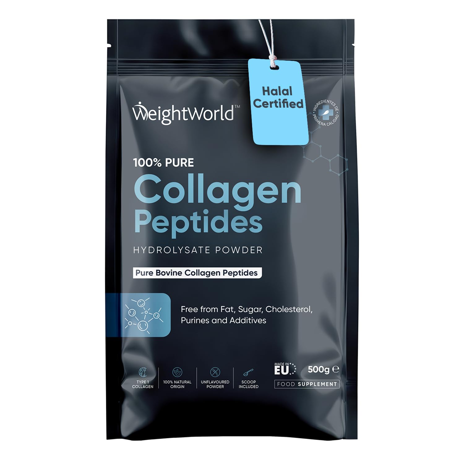 Hydrolysate Bovine Collagen Powder | 500g | Collagen Peptides Powder | Rich in 8 Essential Amino Acids | 50 Servings | Type-1 Collagen Supplements for Women & Men | Halal Certified | Scoop Included