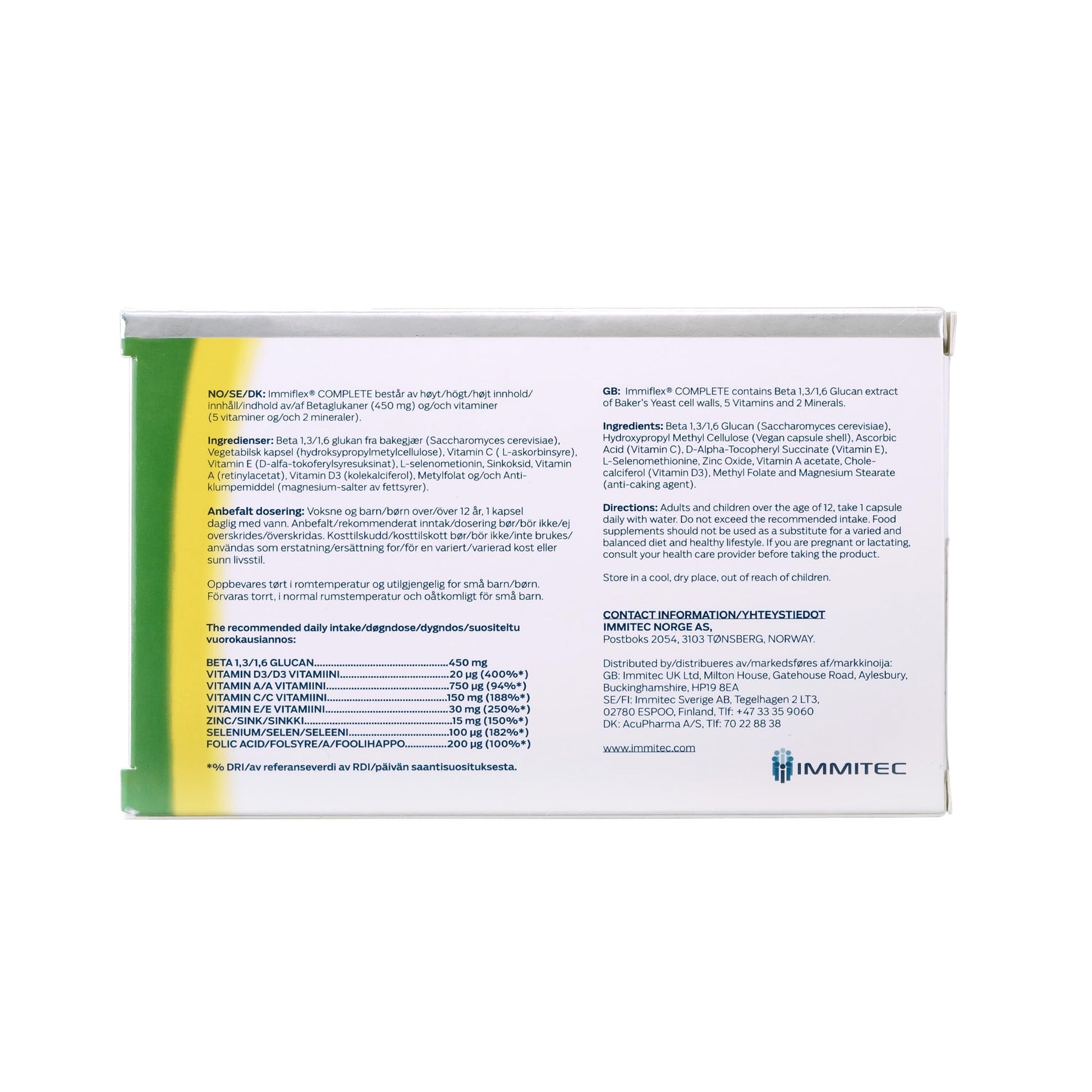 Immiflex Complete | Immune System Booster with 450 mg Beta Glucans | Vitamin D, Vitamin C, Vitamin E, Vitamin A, Zinc, Selenium and Folic Acid | 30 Veg. Capsules (1 Month Supply)