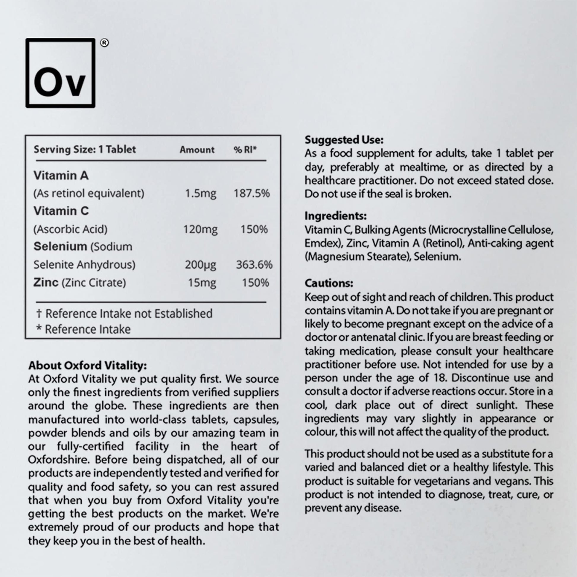 Immune System Boost Tablets | Immune Supplement with Vitamin A & C, Selenium & Zinc | Immune System Health | Oxford Vitality