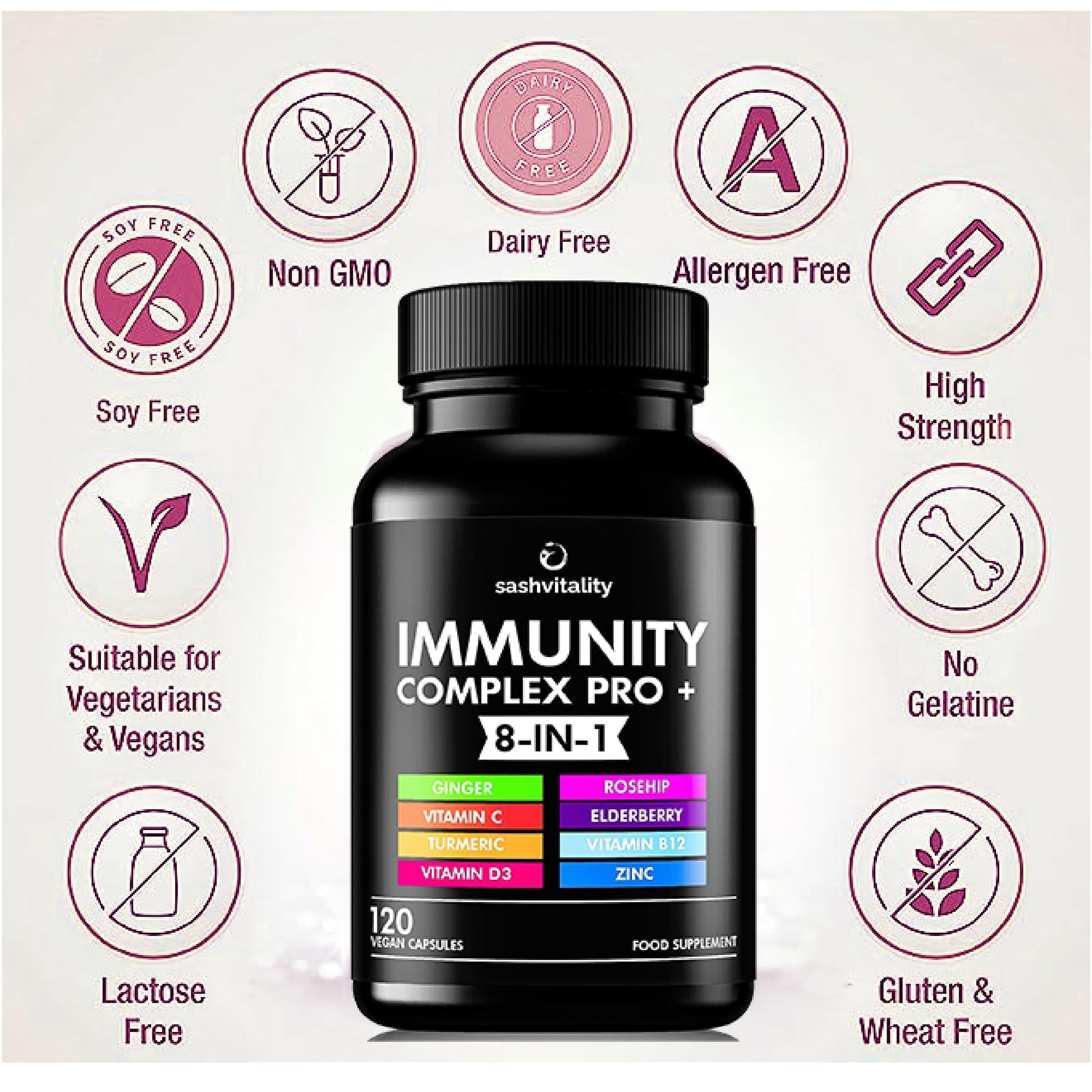 - ✔ HELPS MAINTAIN A HEALTHY IMMUNE SYSTEM: Each of our 120 Vegan Certified capsules come with 15 Active Vitamins, Minerals and Herbal Extracts plus Bio-Cultures that have been carefully selected by our experts to support the normal function of your immune system. Provides a powerful combination of antioxidants and essential nutrients for the human immune system. Designed to deliver comprehensive support, Sash Immune Complex gives you advanced nutrition all year round.