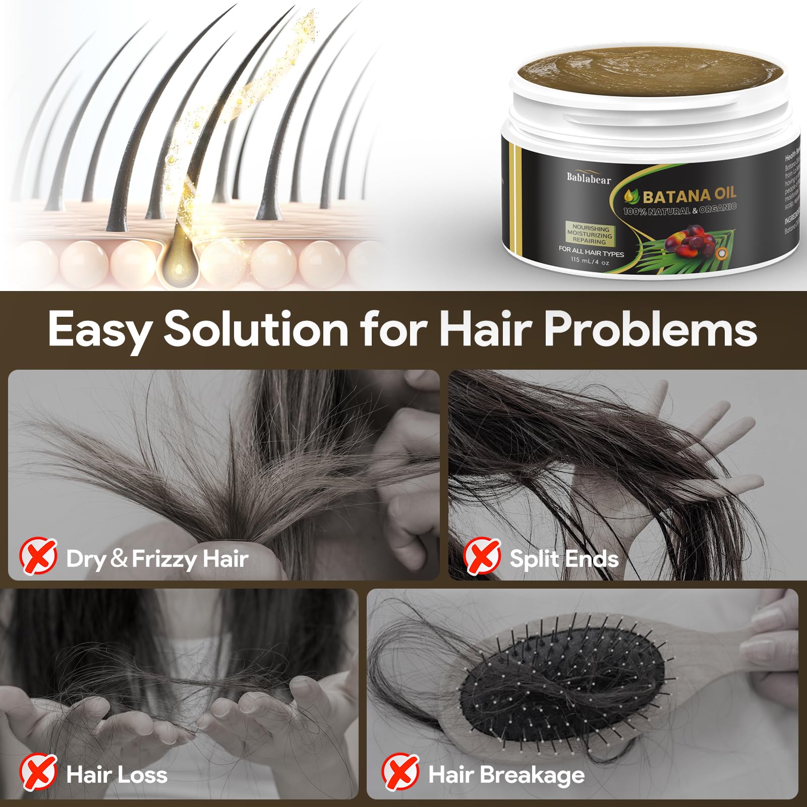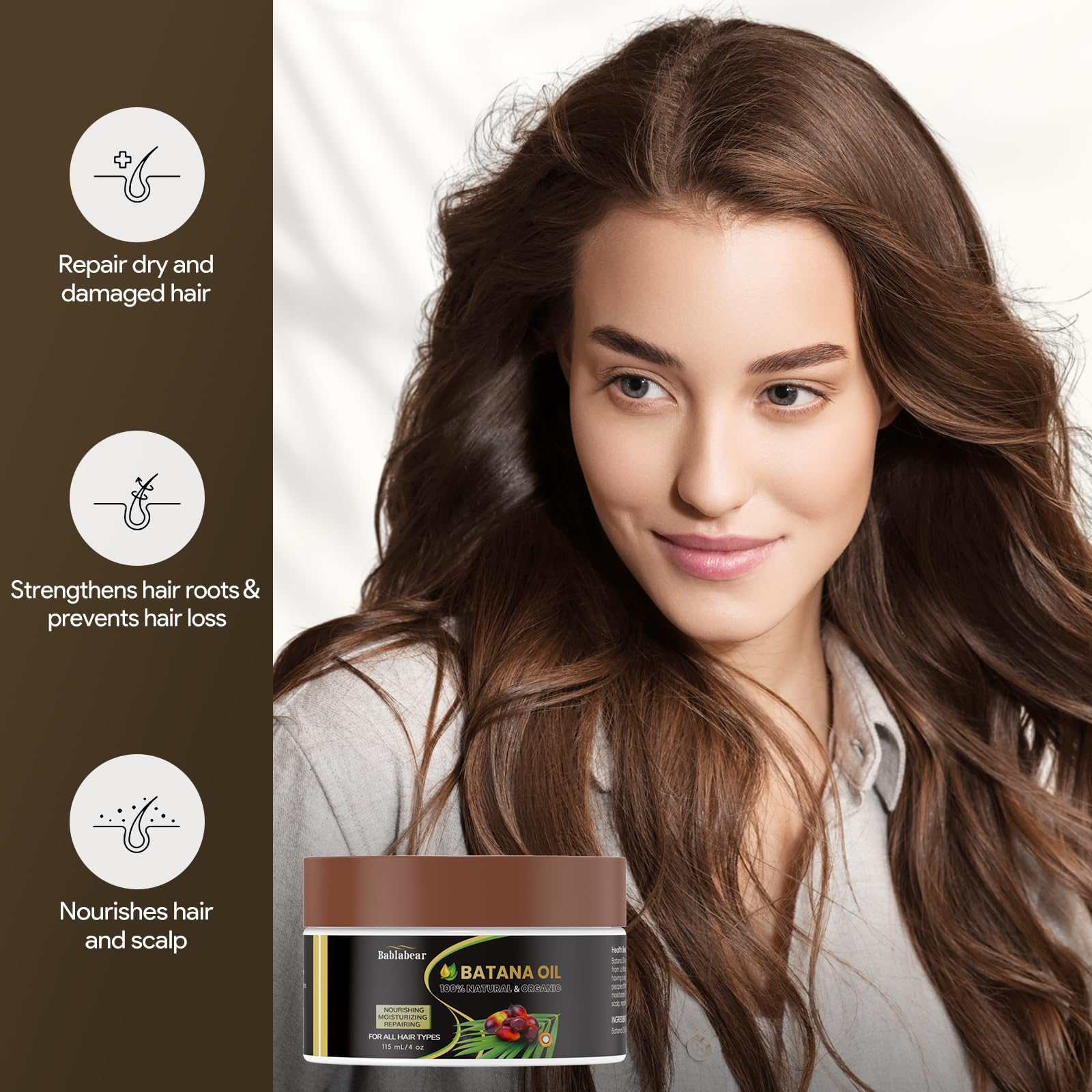 Ingbear Batana Oil, Natural Organic Hair Oil Repairs Damaged Hair, Prevents Hair Loss and Enhances Hair Thickness for Men & Women 4oz