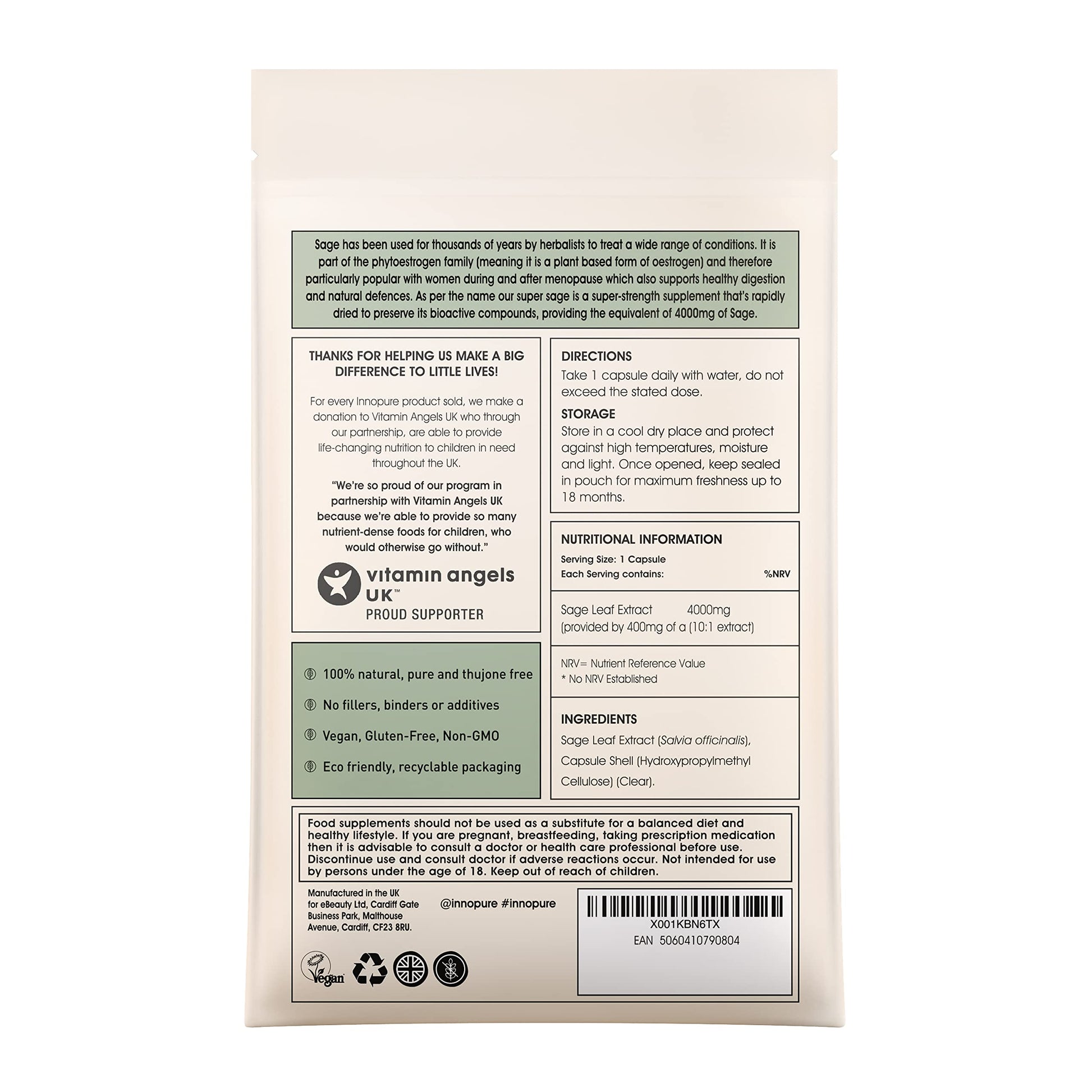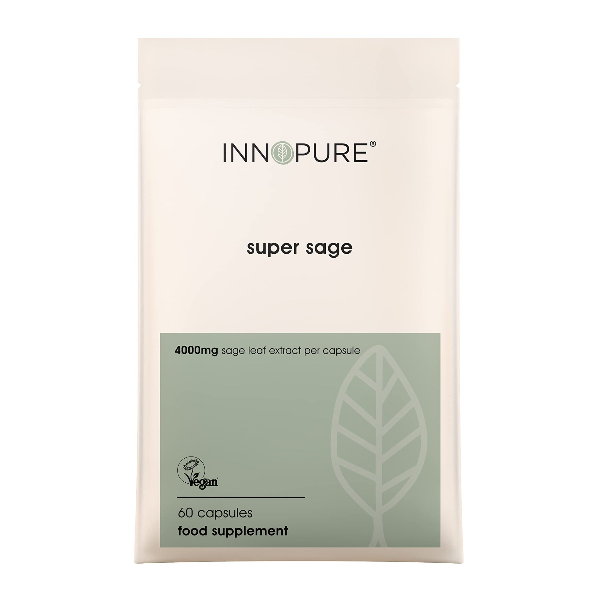 INNOPURE Super Sage Leaf 4000mg - No fillers or Binders. for Menopause Symptoms - High Strength - Hot Flushes & Night Sweats - 60 Capsules, 2 Month Supply - Vegan - UK Made