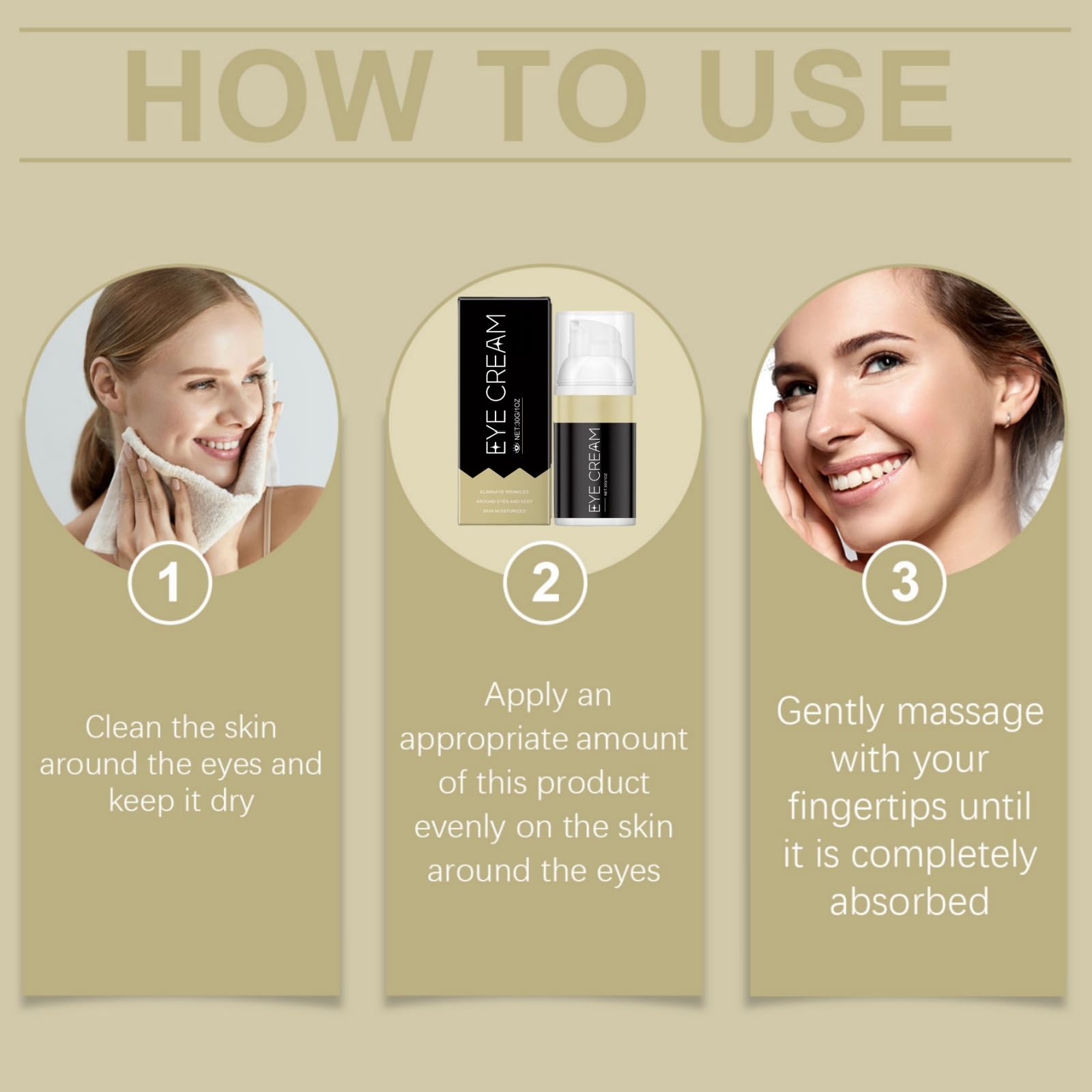 1.Take the size of a grain of rice and apply the under eye tightening cream instant on the ring finger, gently pat the eye.
